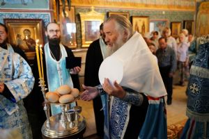 По случаю праздника на вечерне читались ветхозаветные паремии из книг Бытия, Пророка Иезекииля и Притчей Соломоновых, прообразующие Пресвятую Богородицу. На литии освящались хлебы, вино, елей и пшеница.