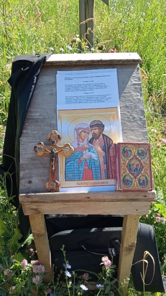 Настоятель Свято-Троицкого храма с. Мамсинер протоиерей Лев Федотов у источника Иоанна Предтечи совершил молебен святым благоверным князьям Петру и Февронии и щедро окропил собравшихся святой водой.
