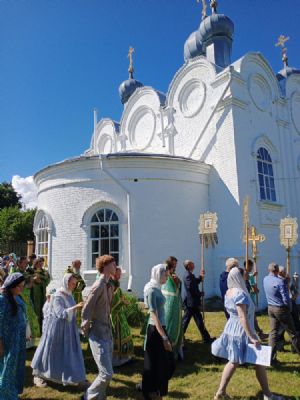 После Литургии прошел крестный ход с чтением Евангелия и кроплением святой водой.