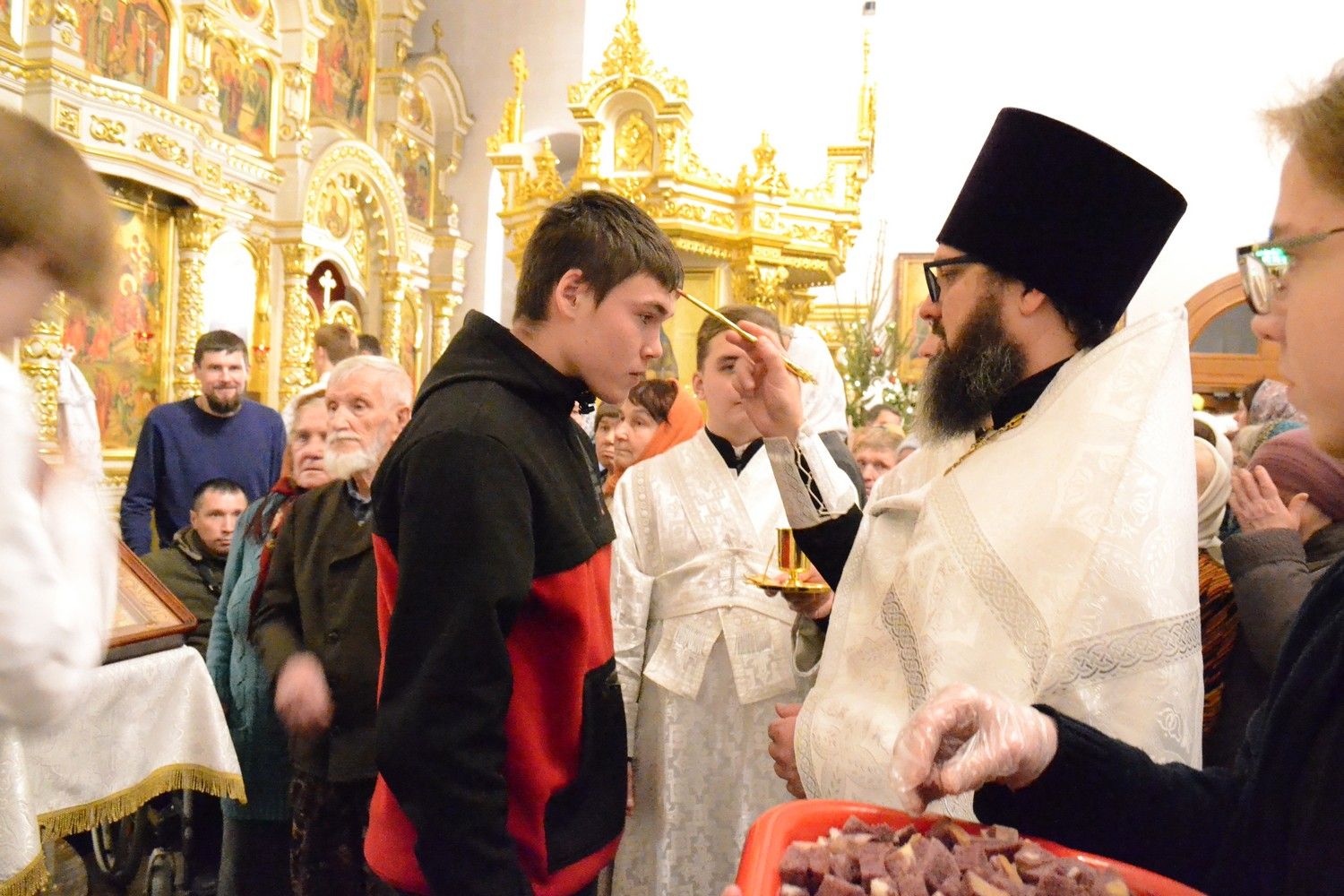 Владыке сослужили секретарь Йошкар-Олинского епархиального управления иерей Димитрий Дьяков, настоятель храма иерей Александр Лоскутов, клирики храма иереи Никита Смирнов, Евгений Симаков и диакон Димитрий Кудряшов, а также протодиакон Михаил Козловский. Песнопения исполнял хор храма, а также хор воспитанников воскресной школы под управлением регента Наталии Поповой.