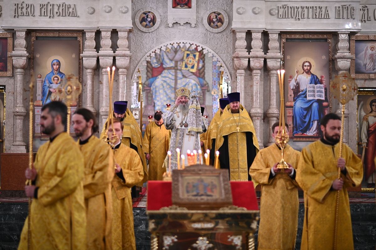 Архипастырю сослужили ключарь кафедрального собора протоиерей Сергий Поглазов и клирики собора иереи Никифор Захаров, Евгений Самойлов, Александр Староверов и Иоанн Милютин, диаконы Артемий Бобоч и Василий Пряморуков. Пел малый состав хора «Благовест» под управлением Татьяны Черновой. Песнопение «Да исправится молитва моя…» прозвучало в исполнении иерея Евгения Самойлова.