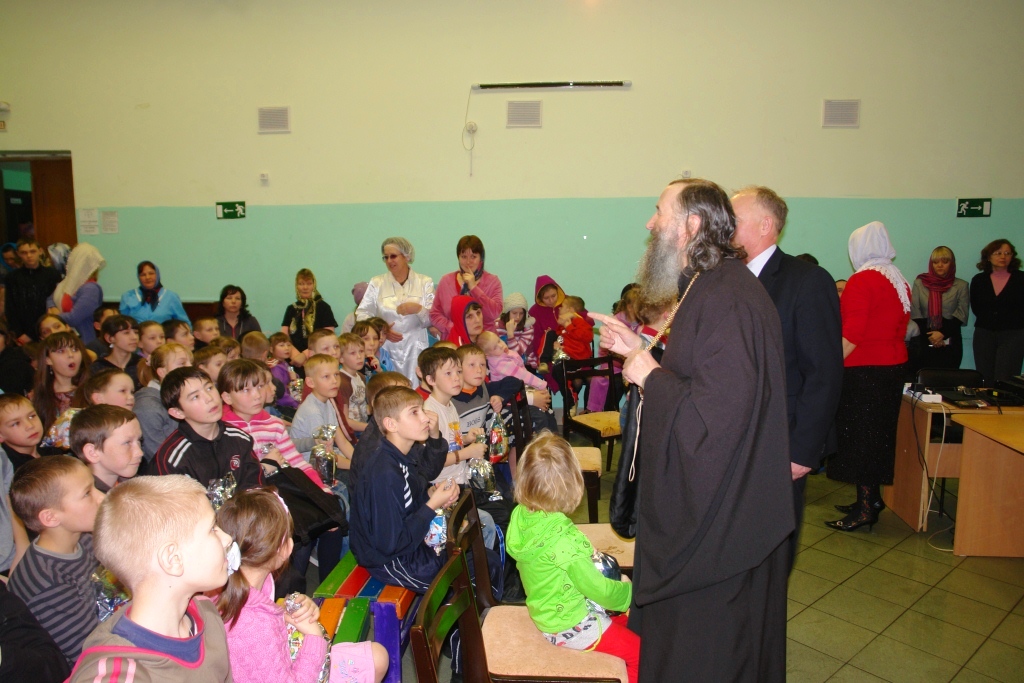 Дети очень рады были увидеть в гостях Владыку. По приезде в актовом зале состоялась встреча архиепископа Иоанна с детьми центра, директором Геннадием Лаврентьевичем Каруниным, его заместителями и всем персоналом детского учреждения.