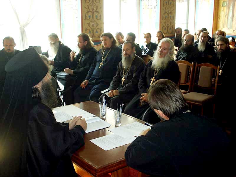 Открывая заседание, Архиепископ Иоанн обратился к присутствующим со вступительным словом. «Епархиальное собрание и соборное богослужение, в котором все мы принимали сегодня участие, – отметил Владыка, – являются свидетельством Евхаристического общения в епархии и соблюдения Устава Церкви. Нынешнее сложное время требует от нас не только внимания к себе, но и глубокого молитвенного делания. Дар священства – это любовь и милость Божия, явленная нам. Не закапываем ли талант Божий, не начинаем ли мы жить как весь остальной мир? Архимандрит Иоанн (Крестьянкин) во время нашей последней встречи в Псково-Печерском монастыре просил сугубо молиться о мире всего мира. Не только о мире внутри себя и среди своей паствы, но и в стране и мире. Только что, в результате трагедии в Беслане, погибло множество мирных жителей. Большинство из них – православные, которые сотавляют 87% всего населения Северной Осетии. Почему Господь попустил это?