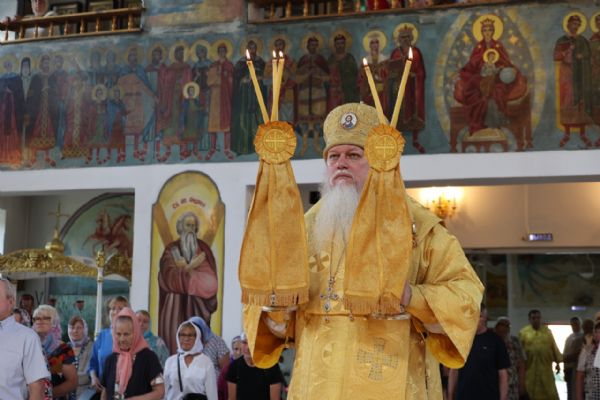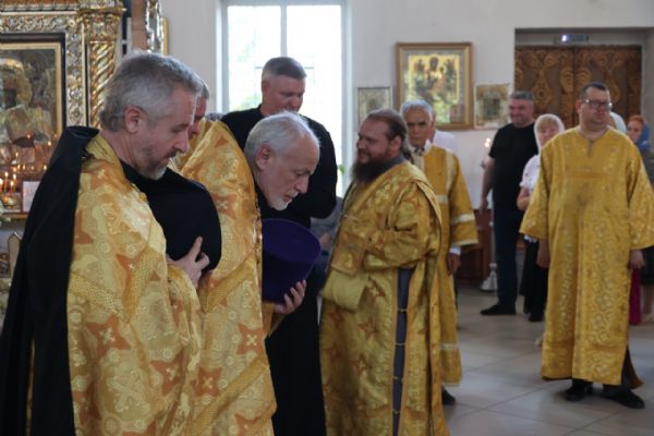 После Литургии было совершено славление перед иконой праздника, затем архипастырь обратился к верующим с проповедью, рассказав о трудах на ниве Христовой апостолов Петра и Павла.