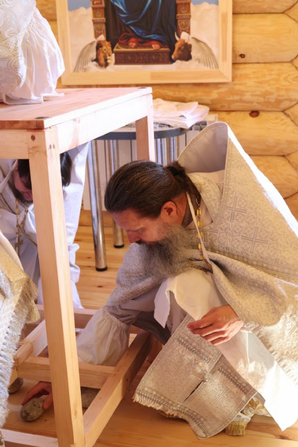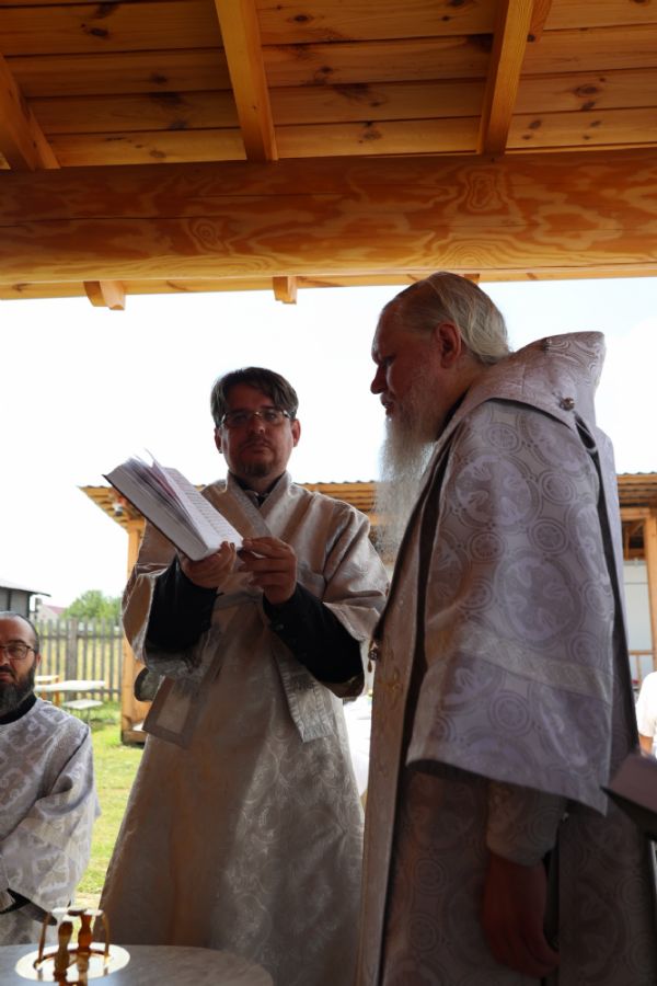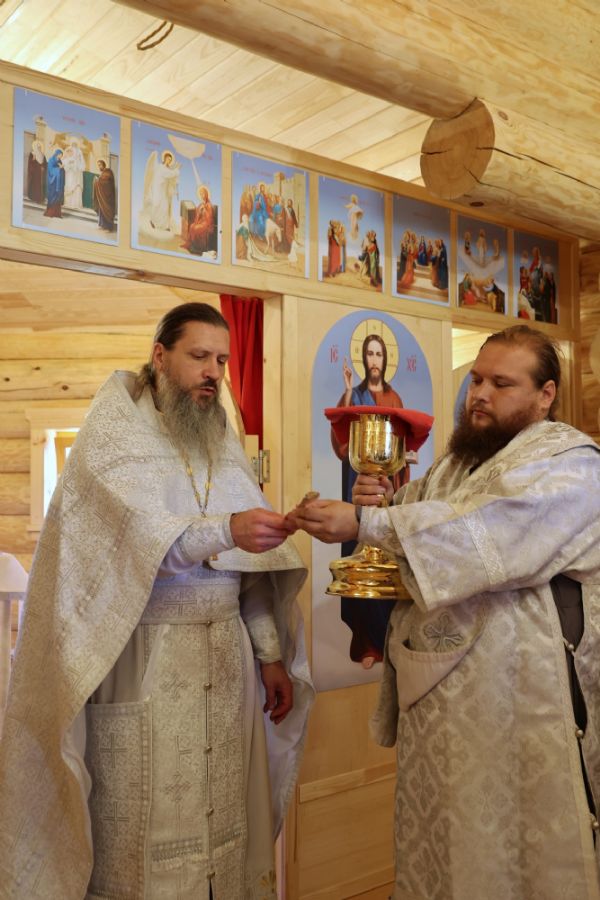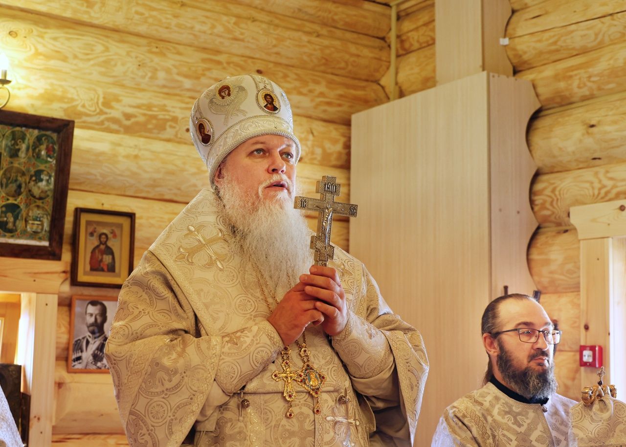 По окончании чина освящения епископ Феофан возглавил Божественную литургию на новоосвященном престоле. Его Преосвященству сослужили клирики храмов г. Волжска, песнопения исполнял архиерейский хор под управлением Любови Михеевой.