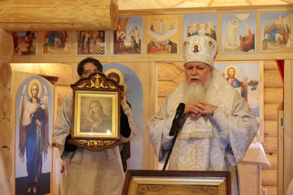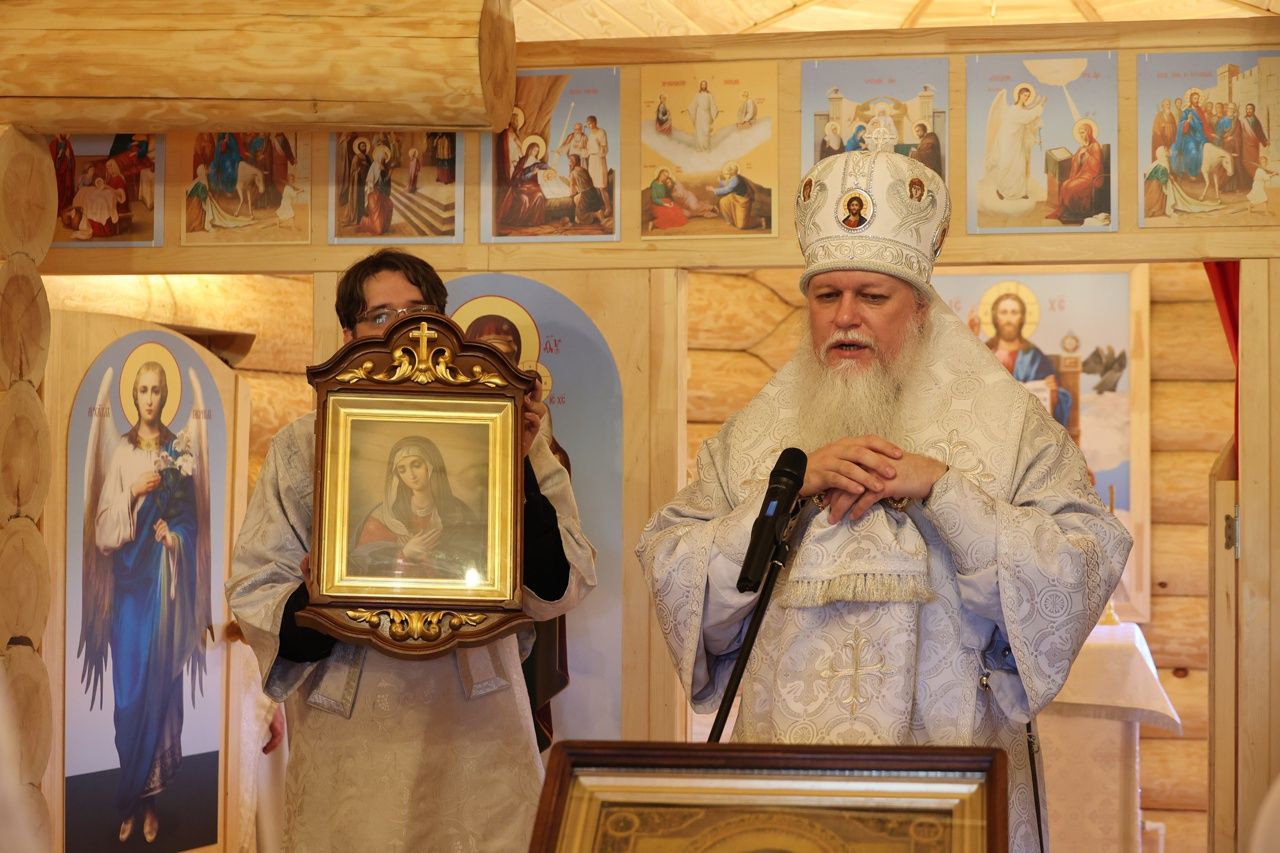 В дар храму епископ Феофан преподнес икону Пресвятой Богородицы «Умиление» — в память о том, что когда-то преподобный Серафим перед похожим образом молился в своей келье. Эта икона ранее принадлежала клирику Никольского кафедрального собора г. Волжска, отошедшего ко Господу два года назад, — и он завещал передать ее в храм.