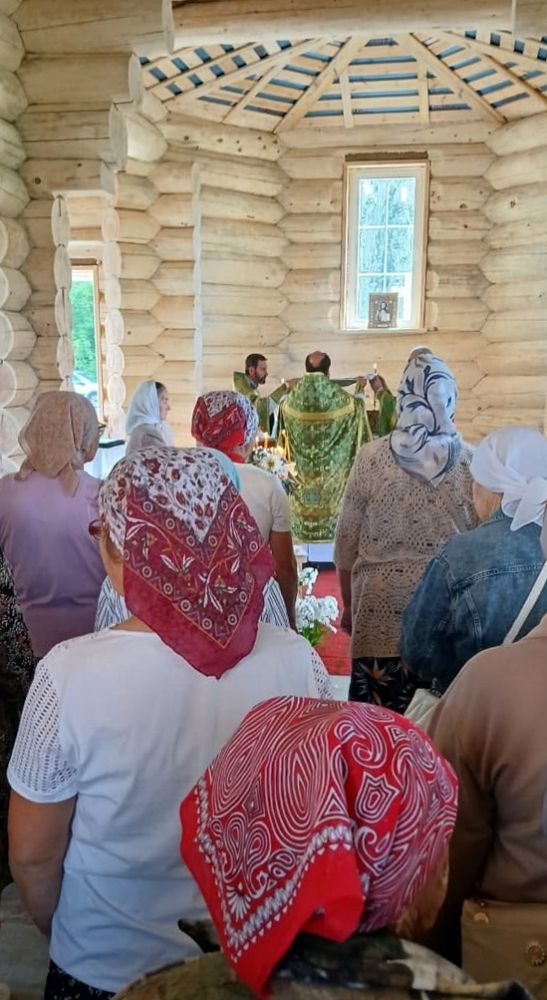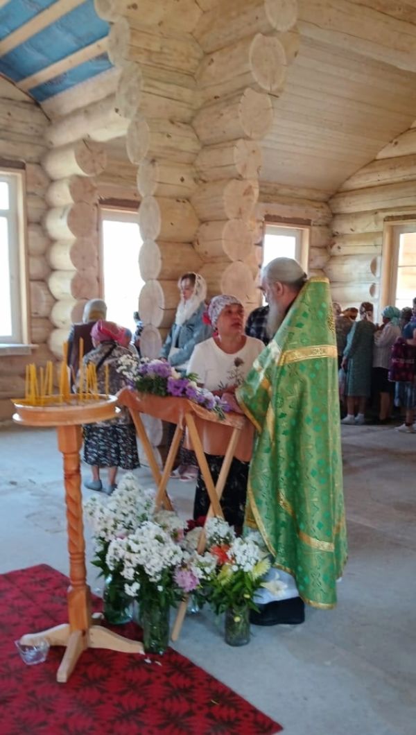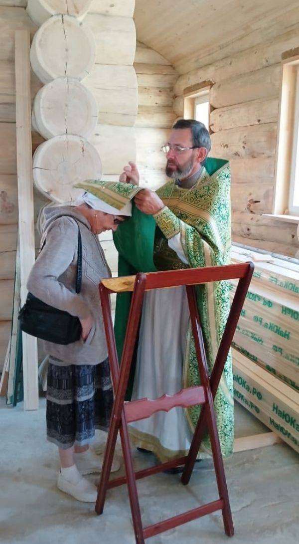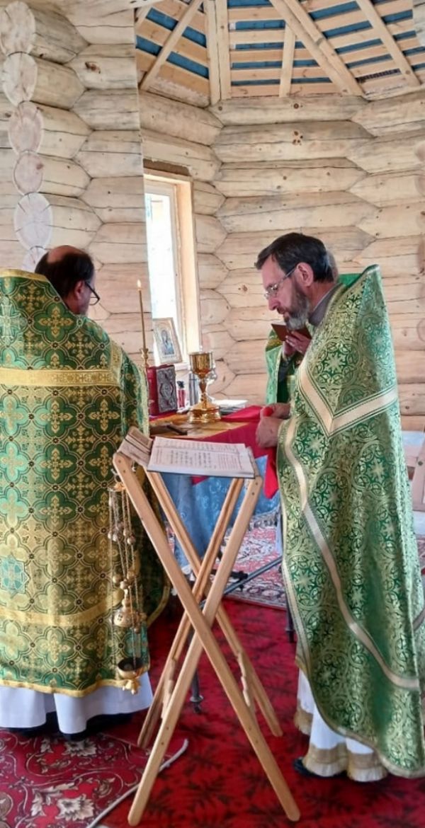 Жители поселка радостно собрались на первую Литургию в новом храме, многие причастились Святых Христовых Таин.