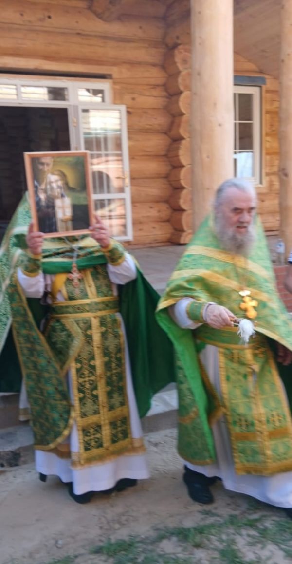 После Литургии был совершен крестный ход по территории храма со чтением Евангелия и кроплением святой водой. Все вместе вознесли молитвы Господу, Пречистой Богоматери и преподобному Серафиму о скорейшем завершении строительных работ.