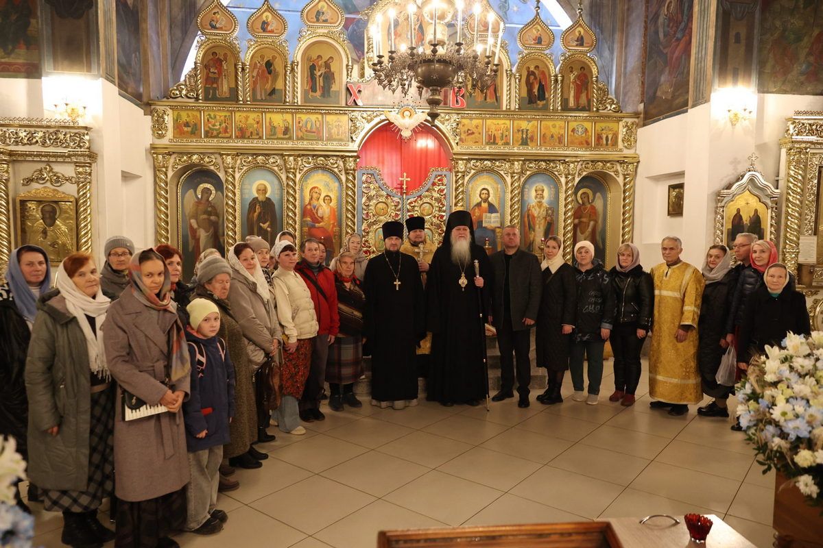 Его Высокопреосвященству сослужили секретарь епархиального совета, полковой священник иерей Георгий Колотов, ключарь кафедрального собора протоиерей Сергий Поглазов и духовенство городских храмов. Песнопения исполнял архиерейский хор «Благовест» под управлением Татьяны Черновой.