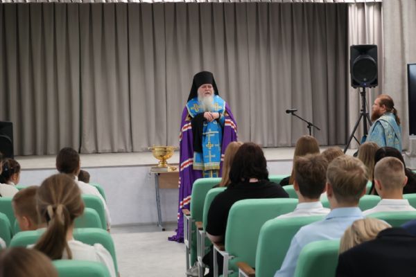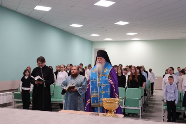 3 сентября епископ Волжский и Сернурский Феофан посетил среднюю общеобразовательную школу №7 г. Волжска, где совершил молебен на начало учебного года.