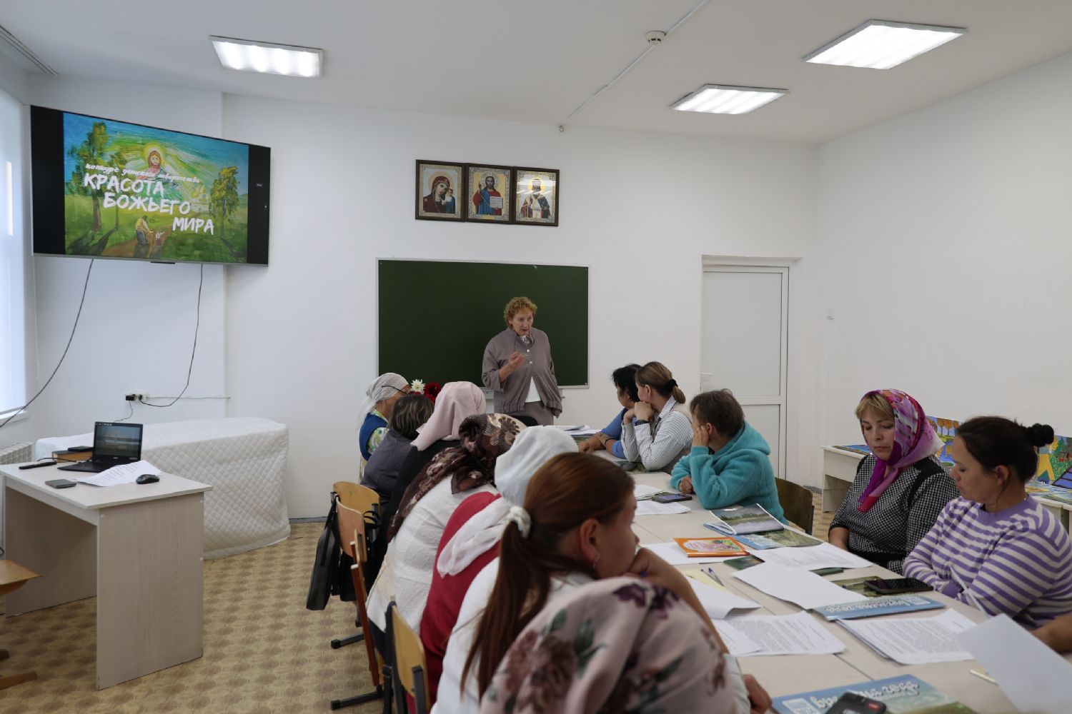 Музыкальное сопровождение, а также видеоряд с репродукциями известных русских художников на евангельские темы настраивали слушателей на поиски творческих решений.