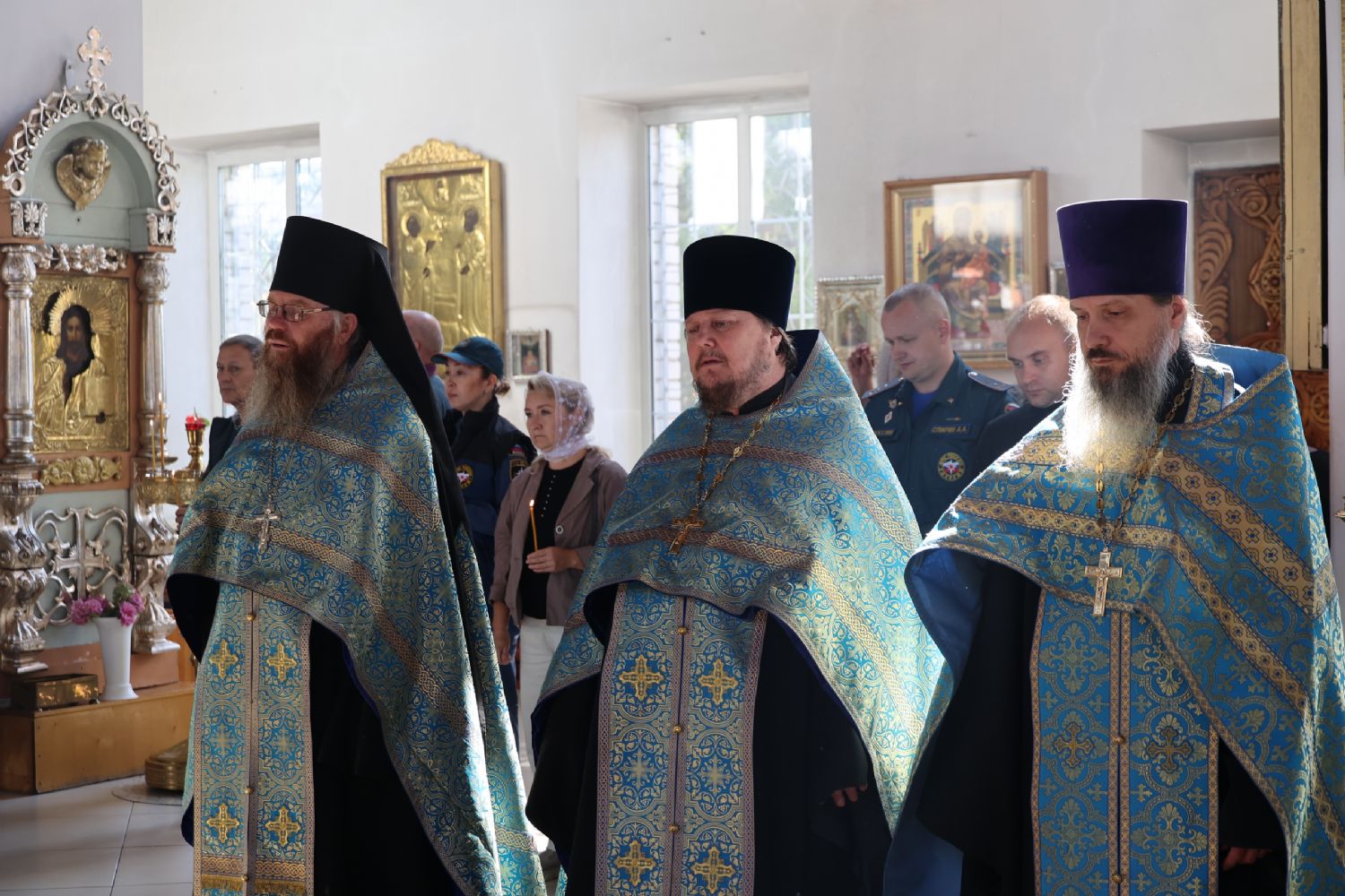 Епископ Феофан совершил для сотрудников МЧС молебен перед иконой Божией Матери «Неопалимая Купина» 505
