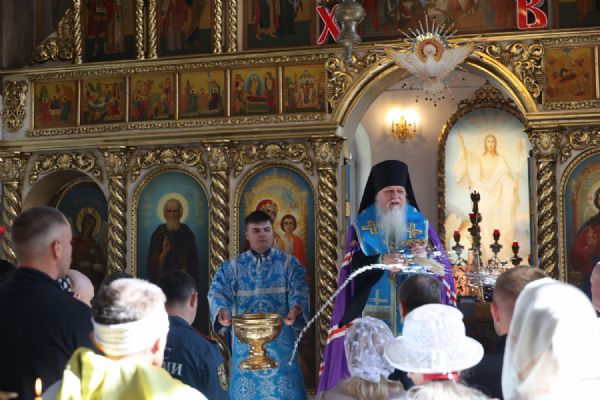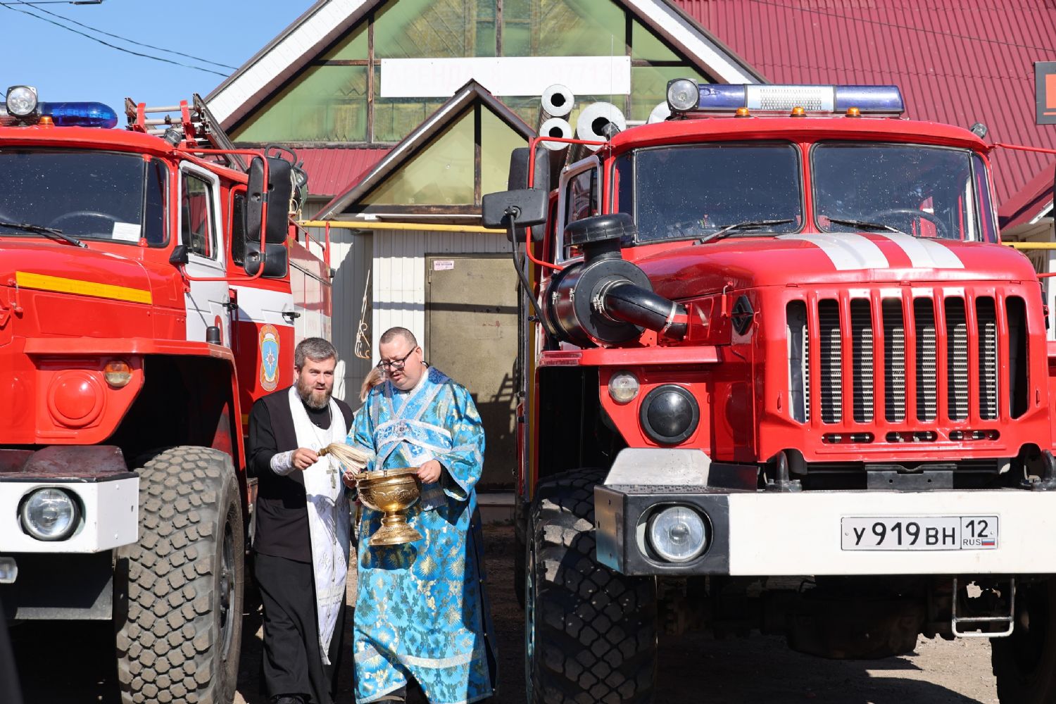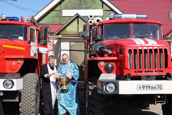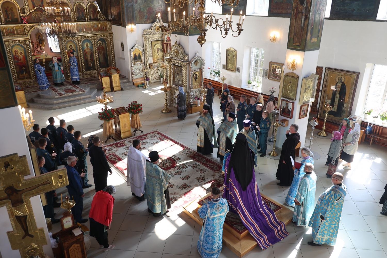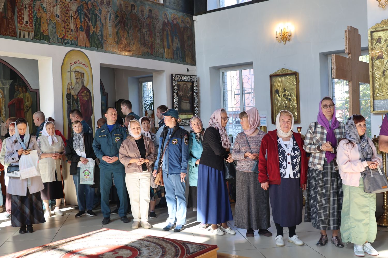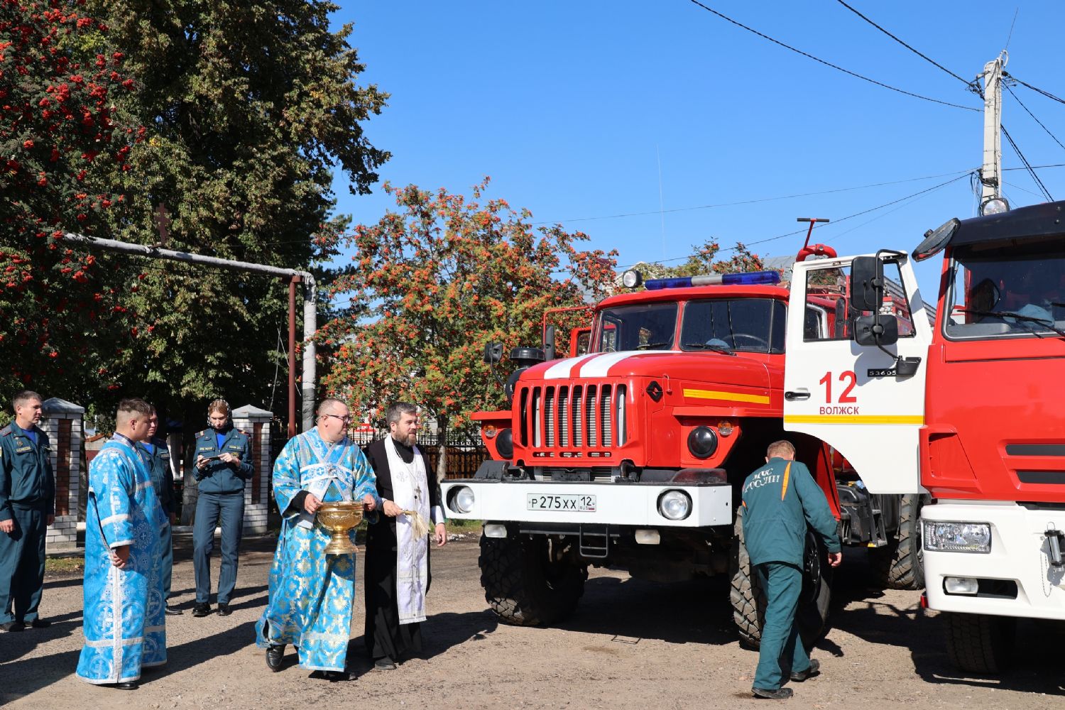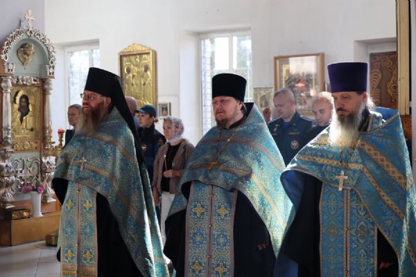 Его Преосвященству сослужило духовенство города Волжска. За богослужением молились сотрудники МЧС.