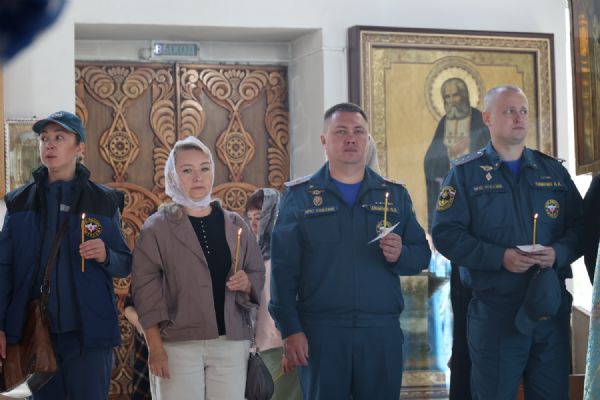 После молебного пения была вознесена молитва о сохранении страны, властей и воинства, сотрудников чрезвычайного ведомства и всех православных христиан от огненной стихии и других бед.