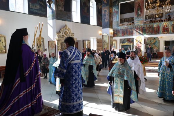 В своем архипастырском слове епископ Феофан обратился к истории написания иконы Божией Матери «Неопалимая Купина», в названии которой есть раскрытие смысла того видения, которое созерцал ветхозаветный пророк Моисей на горе Синай. Боговидец Моисей видел куст, который был объят пламенем, но пламя не причиняло ему вреда. Тот несгорающий куст – купина – задолго до Рождества Пречистой Божией Матери символизировал и прообразовал собой Её великое предназначение на земле.