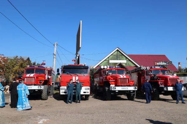 В завершение богослужения архипастырь окропил святой водой огнеборцев, а священники кафедрального собора освятили для отряда МЧС пожарные автомобили.