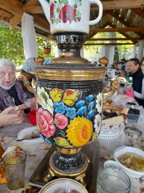Во время совместной трапезы под открытым небом с чаем из настоящего самовара ребята с интересом слушали рассказ об истории здешних мест, о чудесном обретении Креста, о чудотворной иконе Пресвятой Богородицы. Никто не остался равнодушным!