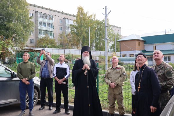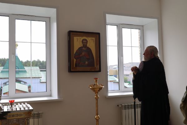 Далее мероприятие продолжилось в здании Волжского епархиального управления, где в этот день на фасаде южной стены домового храма была установлена мозаичная икона Божией Матери «Скоропослушница». Участники встречи помолились в домовом храме, освящённом в честь этого образа Пресвятой Богородицы, после чего владыка Феофан вкратце рассказал гостям о святых, чьи иконы украшают домовой храм.