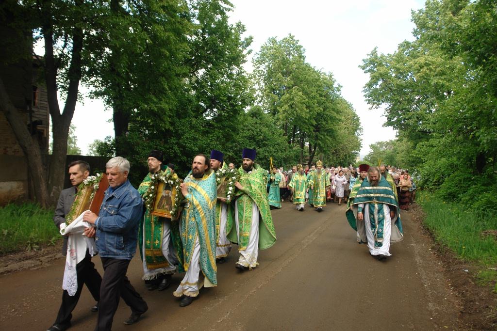 Торжественное богослужение началось в 9 часов утра со встречи архиепископа Марка в храме Успения Божией Матери г .Яранска. В сослужении архиепископа Иоанна и клира Вятской и Йошкар-Олинской епархии после службы был совершен традиционный молебен с крестным ходом на кладбище к часовне прп. Матфея.