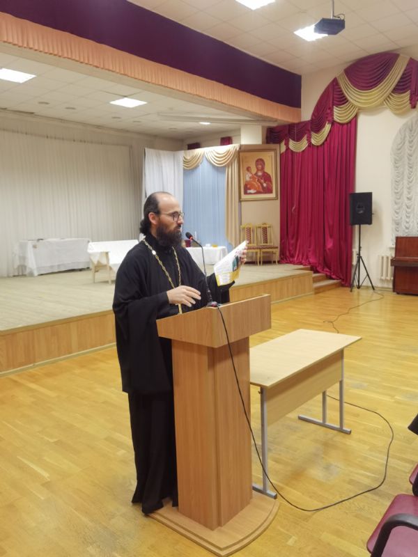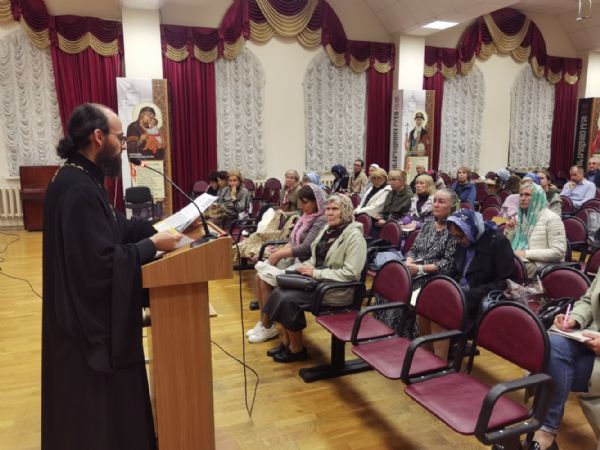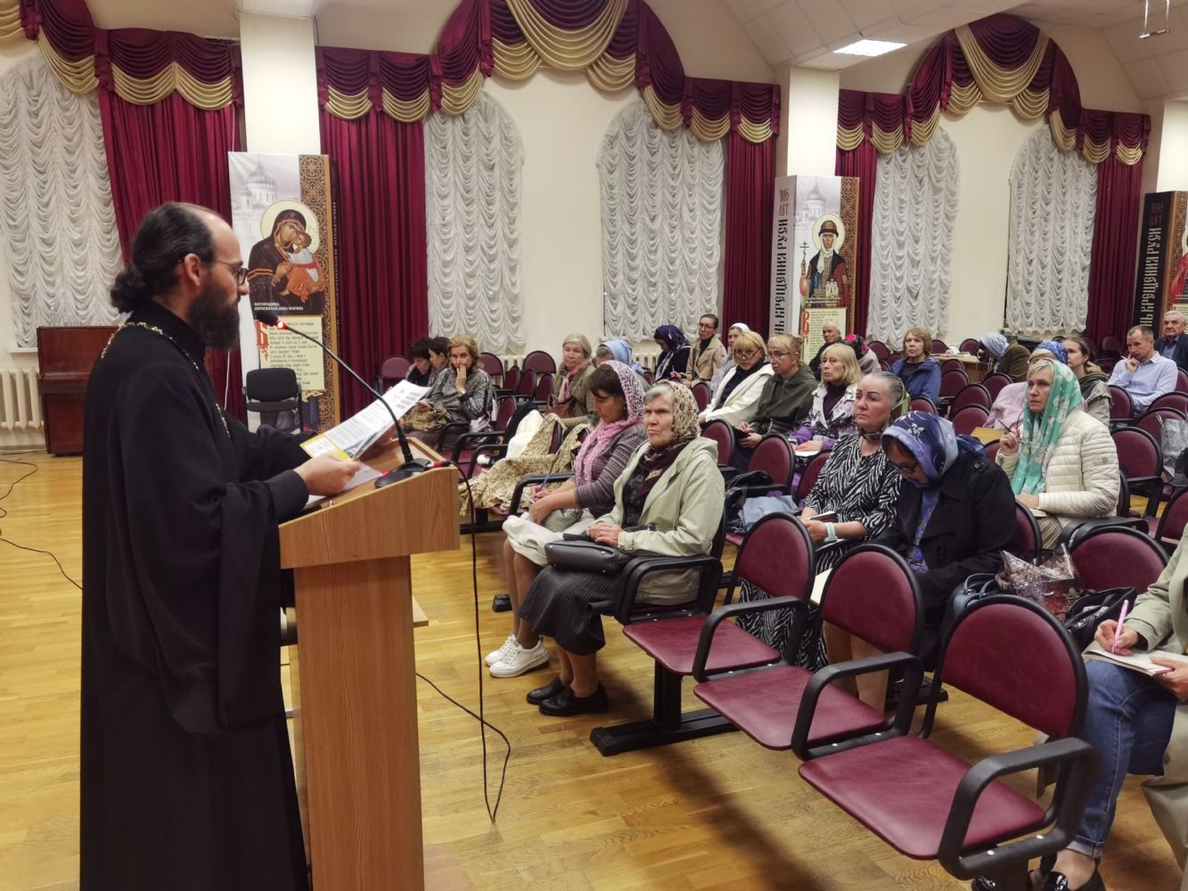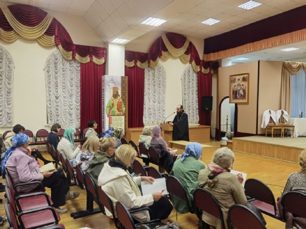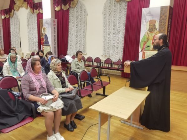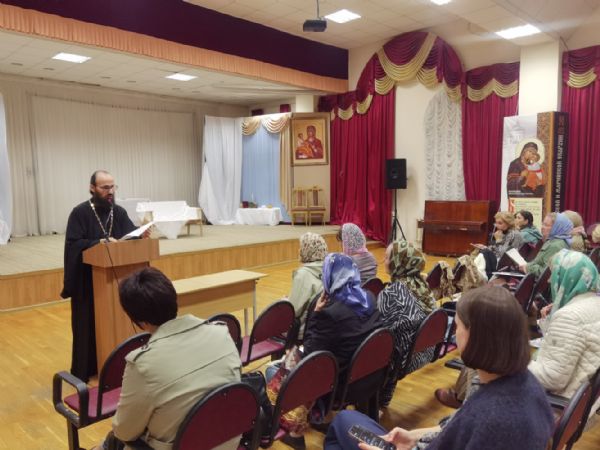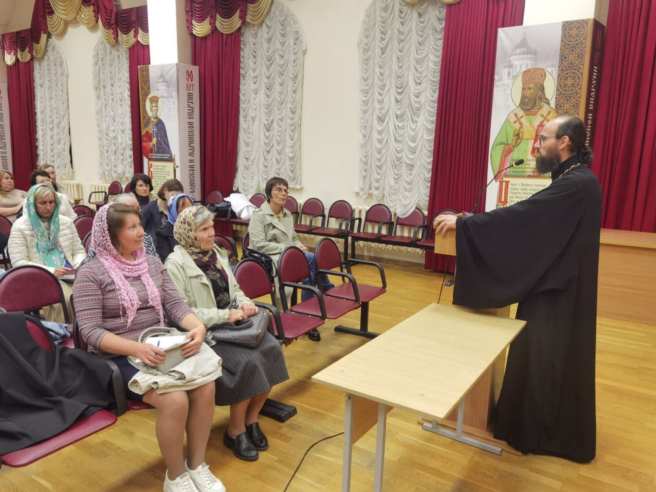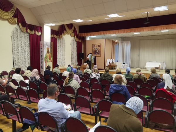 Далее слушатели собрались в актовом зале Православного центра – отец Иоанн, опираясь на святоотеческие толкования, продолжил разъяснение евангельских текстов – на первом в этом году занятии началось изучение 2-го послания к Коринфянам апостола Павла.