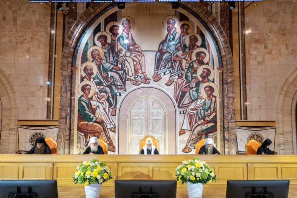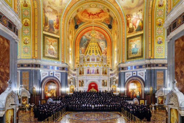 Перед началом заседания в нижней Преображенской церкви Храма Христа Спасителя была совершена Божественная литургия.