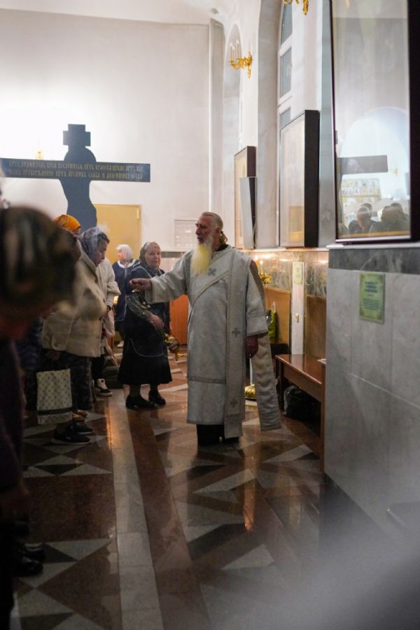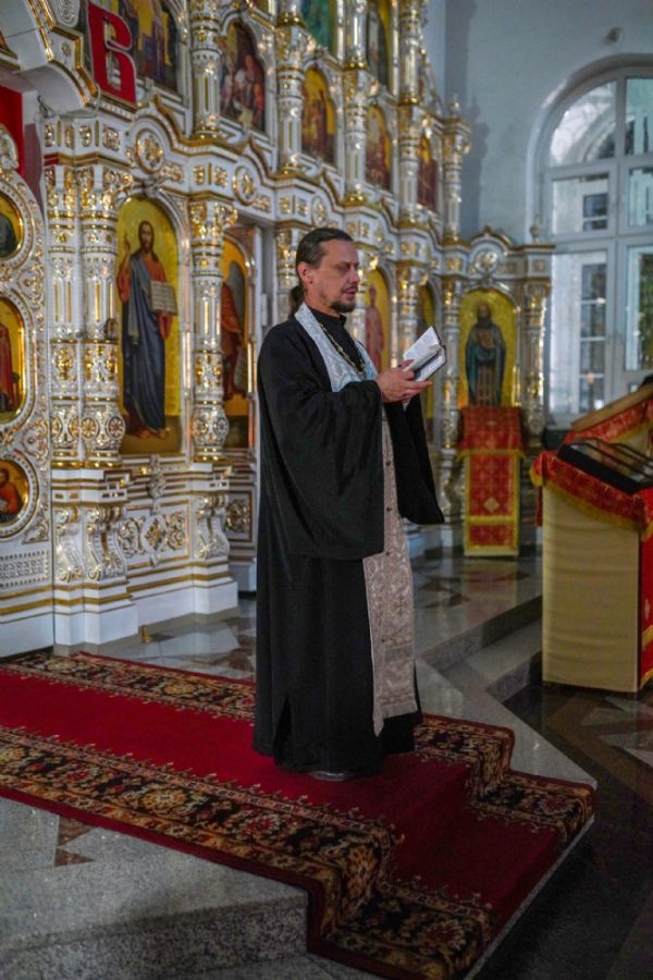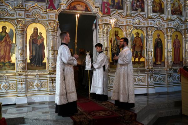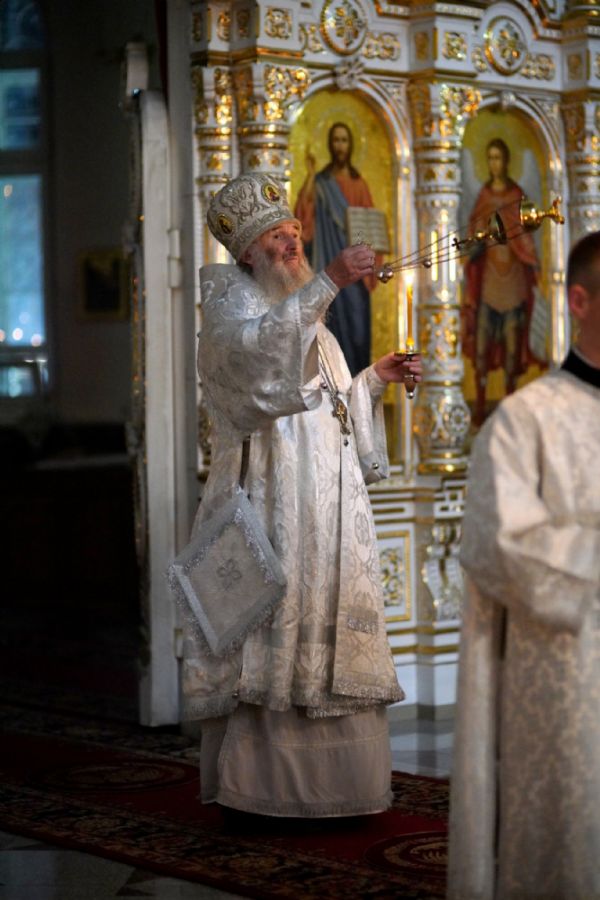 Владыке сослужили настоятель собора иерей Андрей Кочаков, иерей Леонид Вылекжанин, иерей Димитрий Лукьянов и диакон Алексий Кузнецов, а также протодиакон Михаил Козловский. Песнопения исполнял хор собора под управлением Алисы Вылегжаниной.