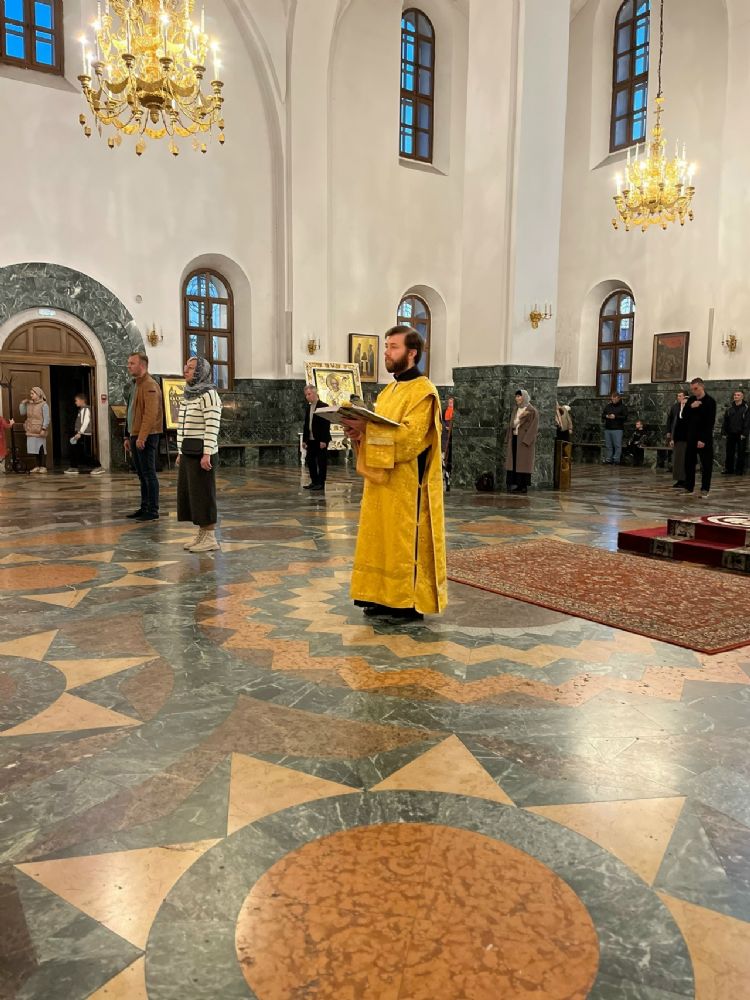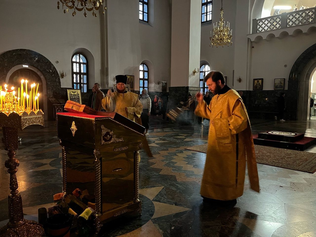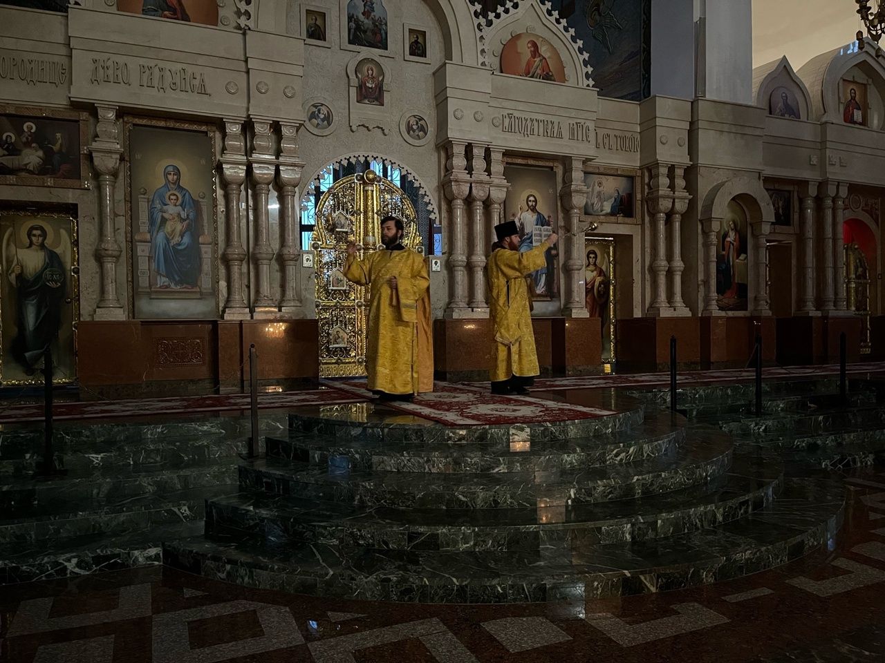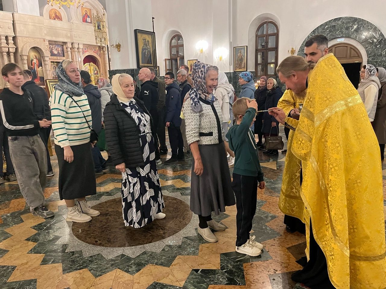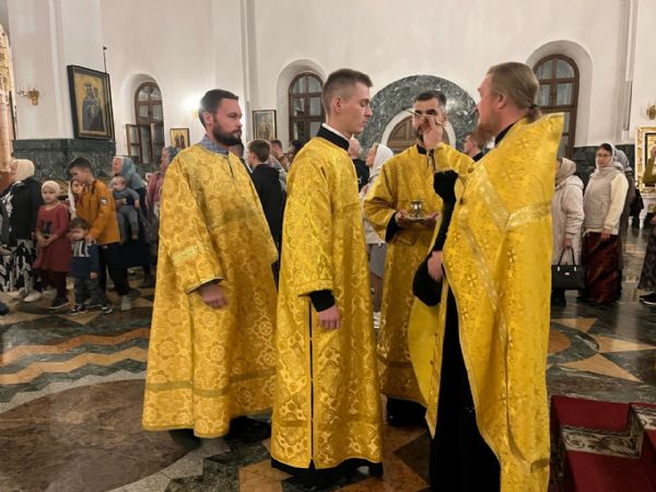 Архипастырю сослужили ключарь кафедрального собора протоиерей Сергий Поглазов, клирики собора иереи Никифор Захаров, Евгений Самойлов и Иоанн Милютин, диаконы Андрей Дружинин и Артемий Бобоч, а также протодиакон Михаил Козловский. Песнопения исполнял архиерейский хор «Благовест» под управлением Татьяны Черновой.