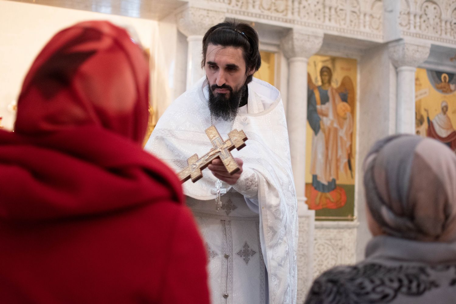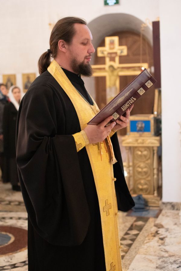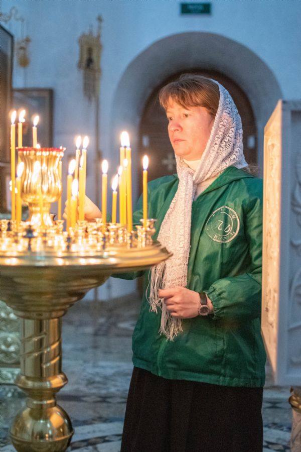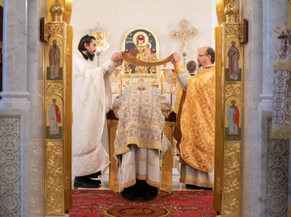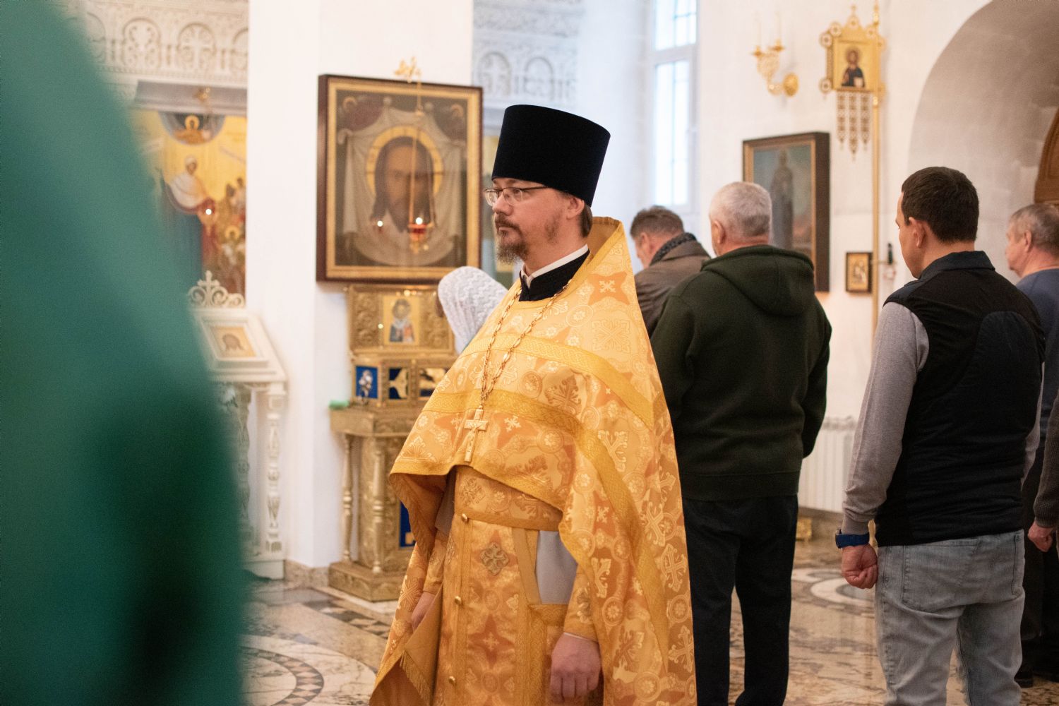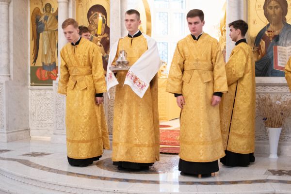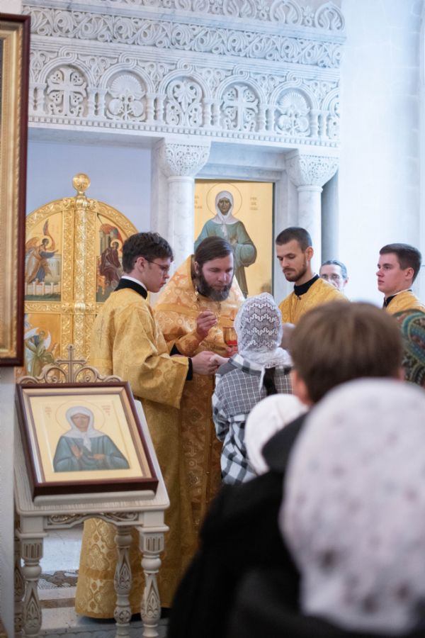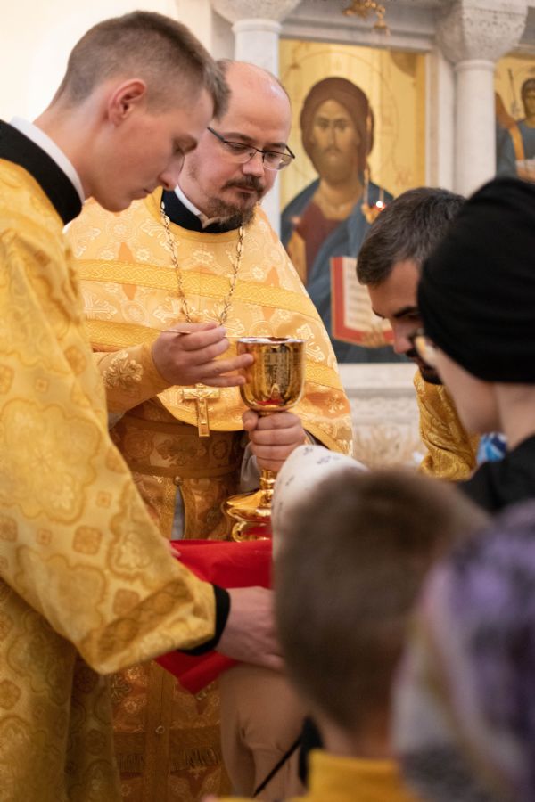 Его Высокопреосвященству сослужили настоятель храма иерей Алексий Михеев, клирик храма иерей Василий Пряморуков и протодиакон Михаил Козловский. Песнопения исполняли хор храма под управлением Александры Ивановой и детский хор воскресной школы под руководством Ольги Шевчук.