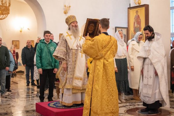 После чтения Евангелия владыка обратился к собравшимся с архипастырским словом, разъяснив глубокий духовный смысл прочитанного евангельского зачала о любви к врагам.