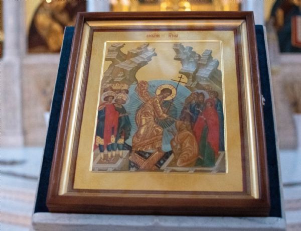 Перед отпустом Литургии владыка освятил новый Крест-Голгофу для убранства храма.