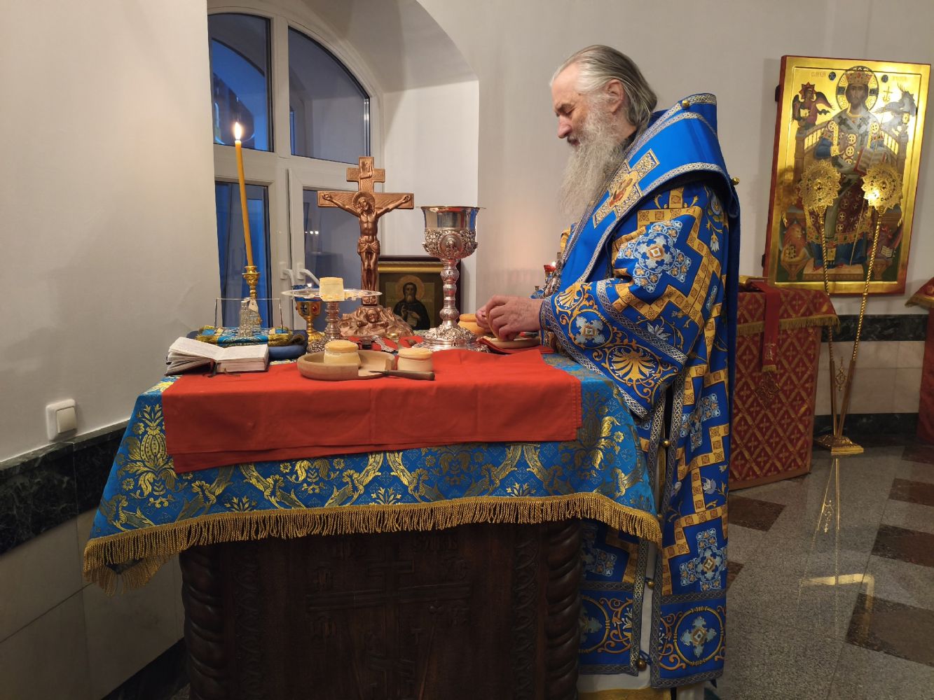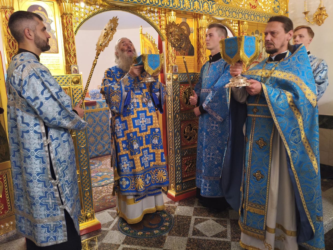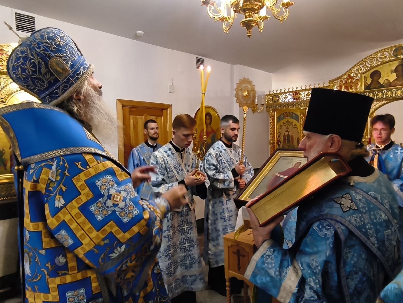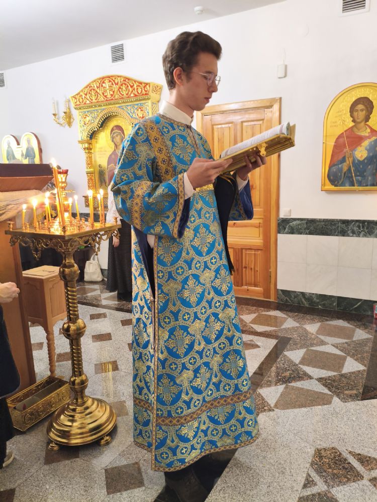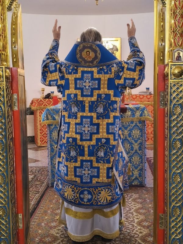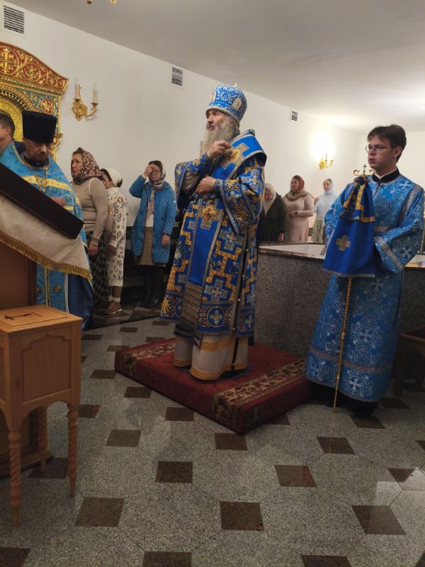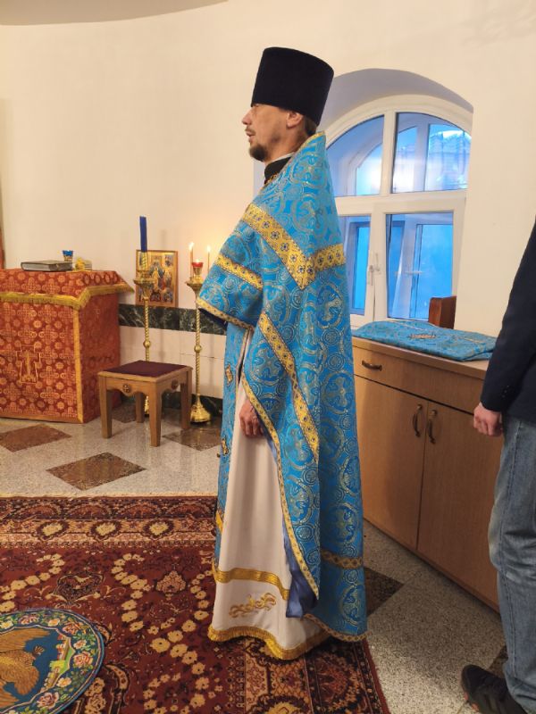 Владыке сослужили настоятель собора иерей Андрей Кочаков и протодиакон Михаил Козловский. Песнопения исполнял хор собора под управлением Алисы Вылегжаниной.