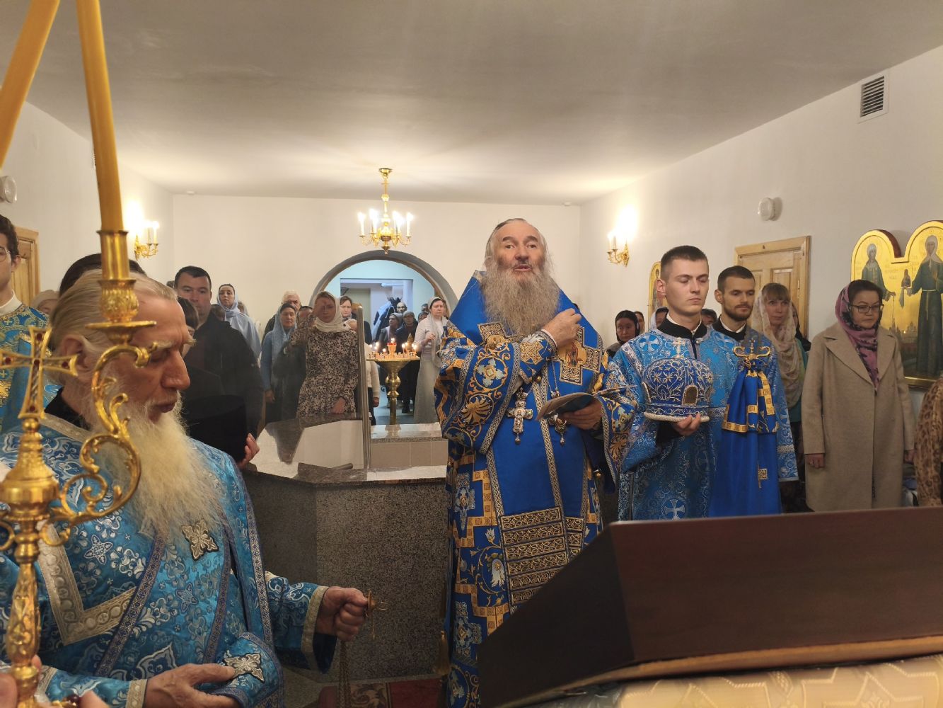 14 октября, в праздник Покрова Пресвятой Богородицы, митрополит Йошкар-Олинский и Марийский Иоанн совершил раннюю Божественную литургию в нижнем храме Воскресенского собора г. Йошкар-Олы, освященном в честь Покрова Пресвятой Богородицы.