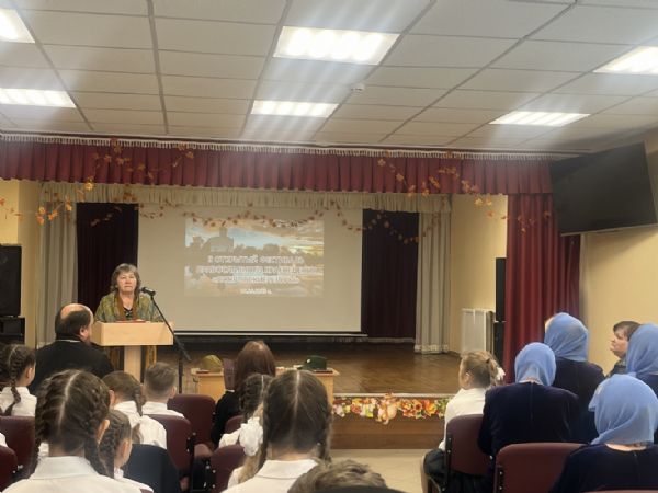 Это необычное районное мероприятие как совместный проект Пригородного благочиния и Отдела образования района собрало более 70 человек из Советского, Алексеевского, Вятского и Чкаринского православных приходов, школьников и их родителей, педагогов, ветеранов труда. А всё потому, что тема «Защитники Отечества» не могла оставить равнодушным никого!