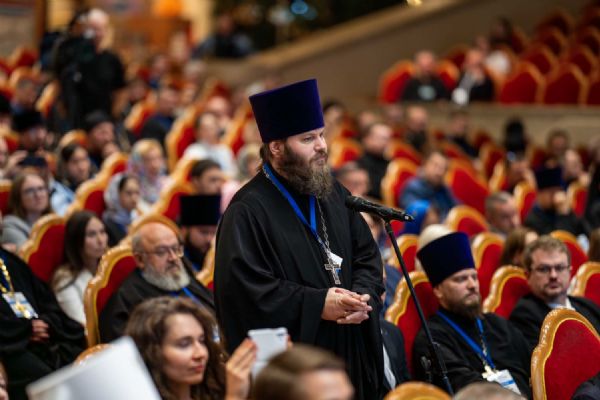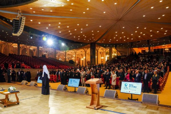 Предстоятель Русской Церкви со сцены Зала церковных соборов благословил участников форума и обратился к собравшимся с Первосвятительским словом.