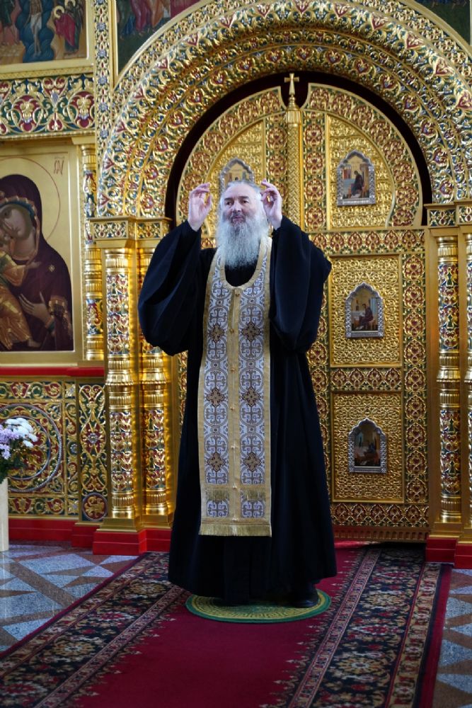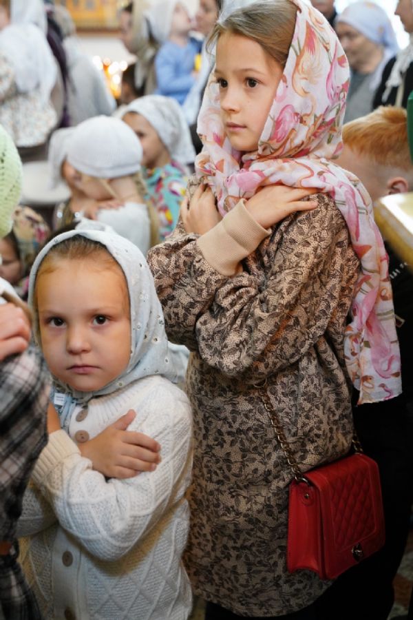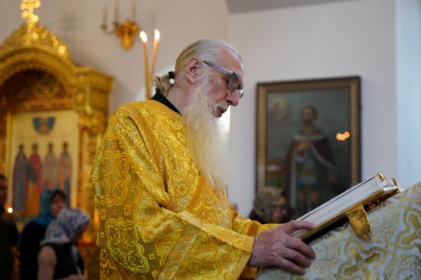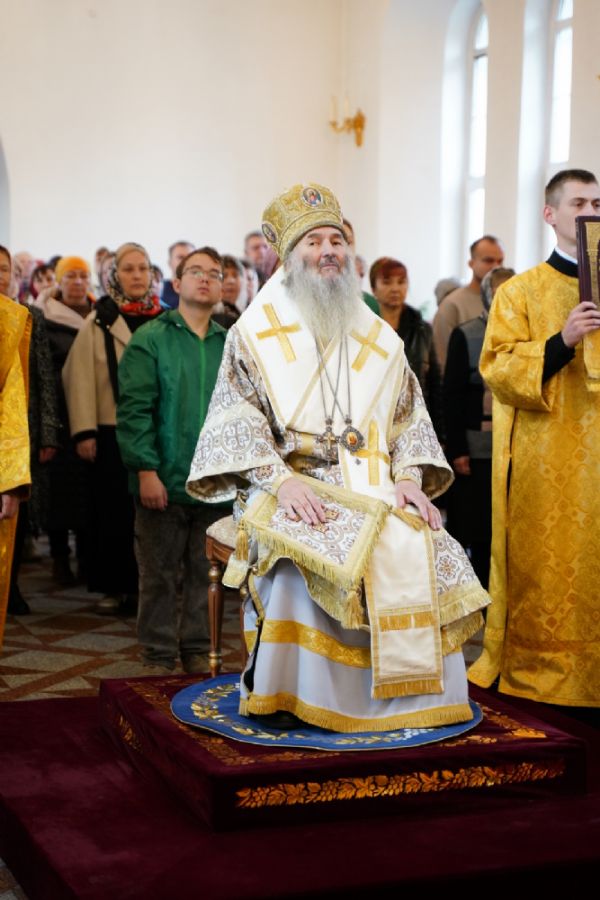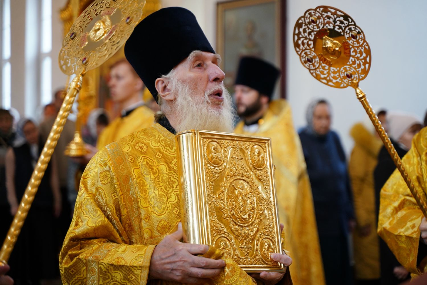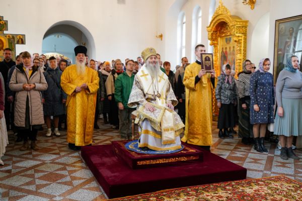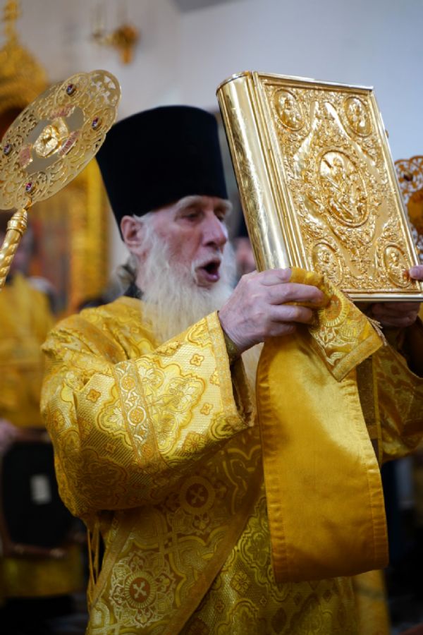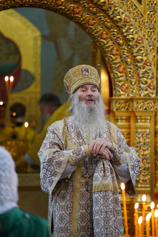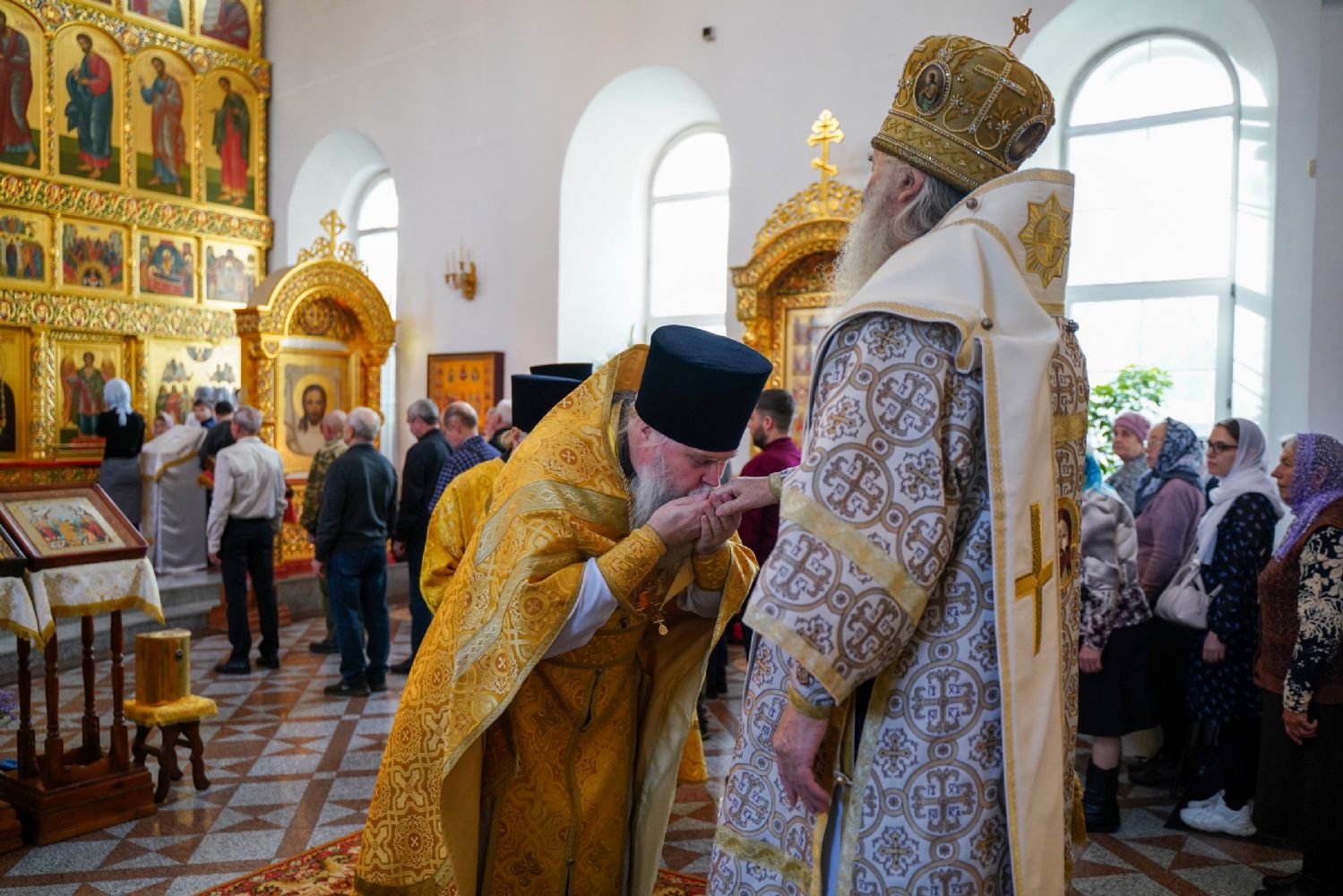 Его Высокопреосвященству сослужили настоятель храма протоиерей Александр Бачурин, клирики храма иерей Виктор Умрихин и диакон Алексий Ершов, а также протодиакон Михаил Козловский и клирик Минусинской епархии иерей Матфей Фокша. Песнопения исполняли хор храма под управлением регента Елены Умрихиной и детский хор воскресной школы под руководством Анны Михеевой.