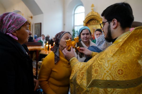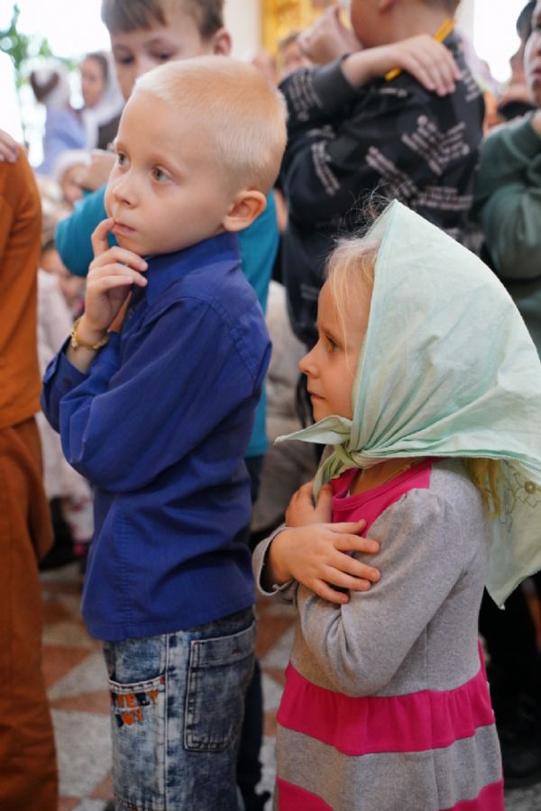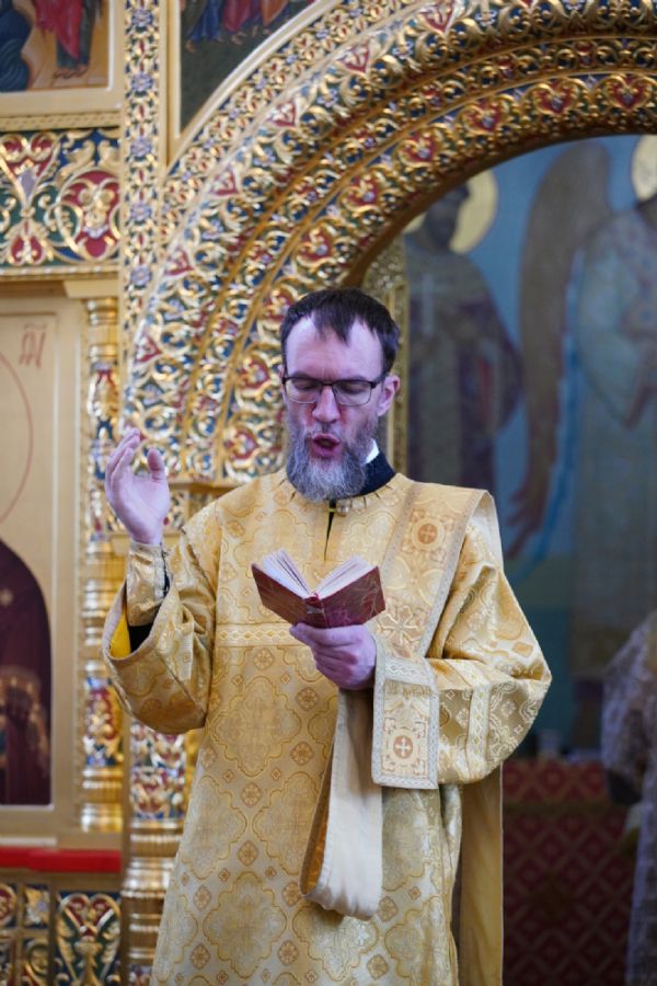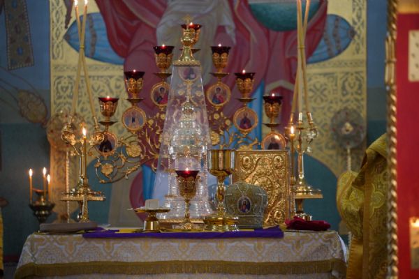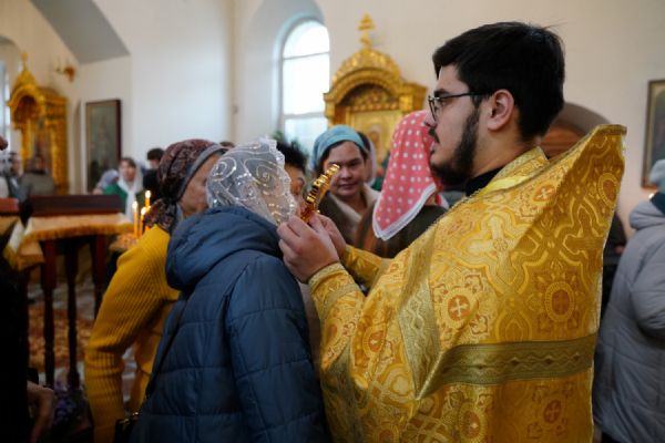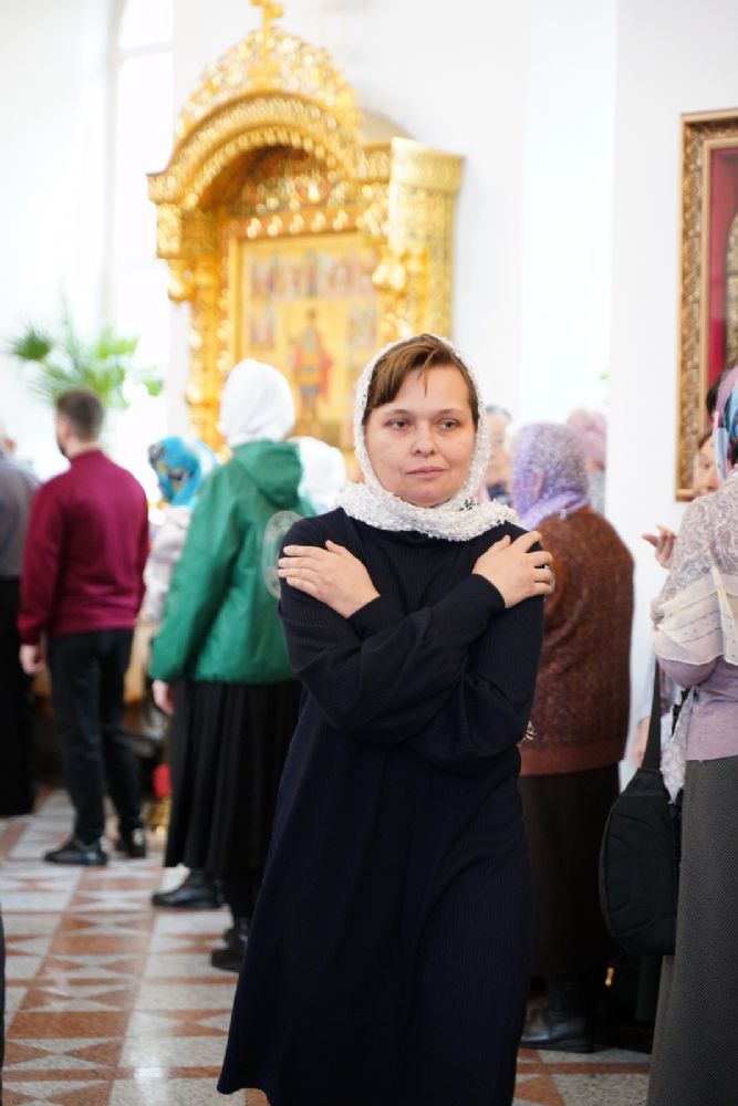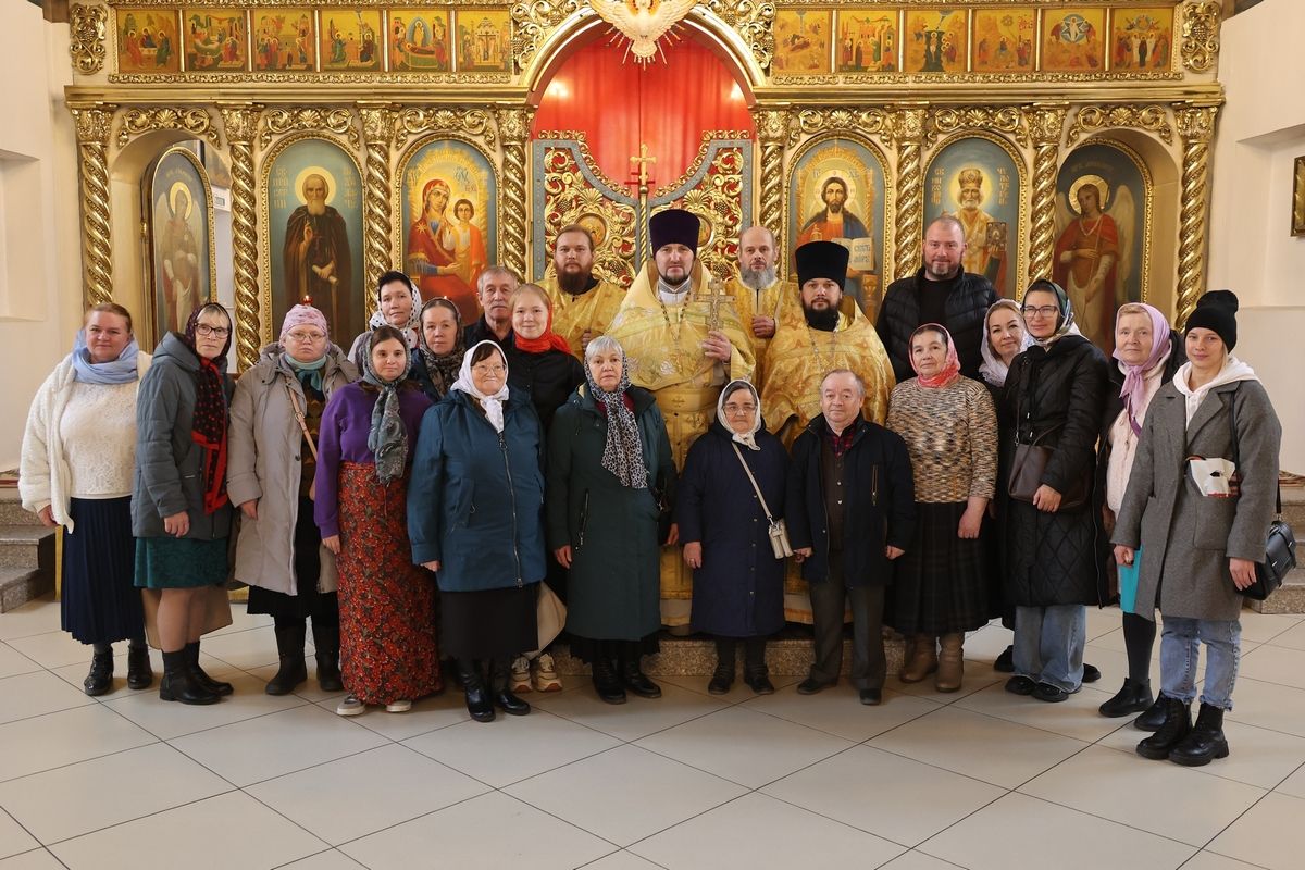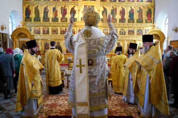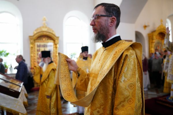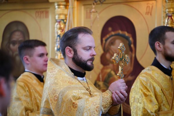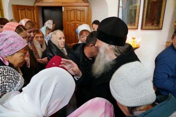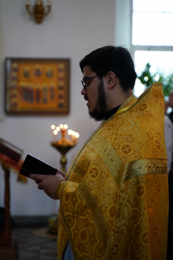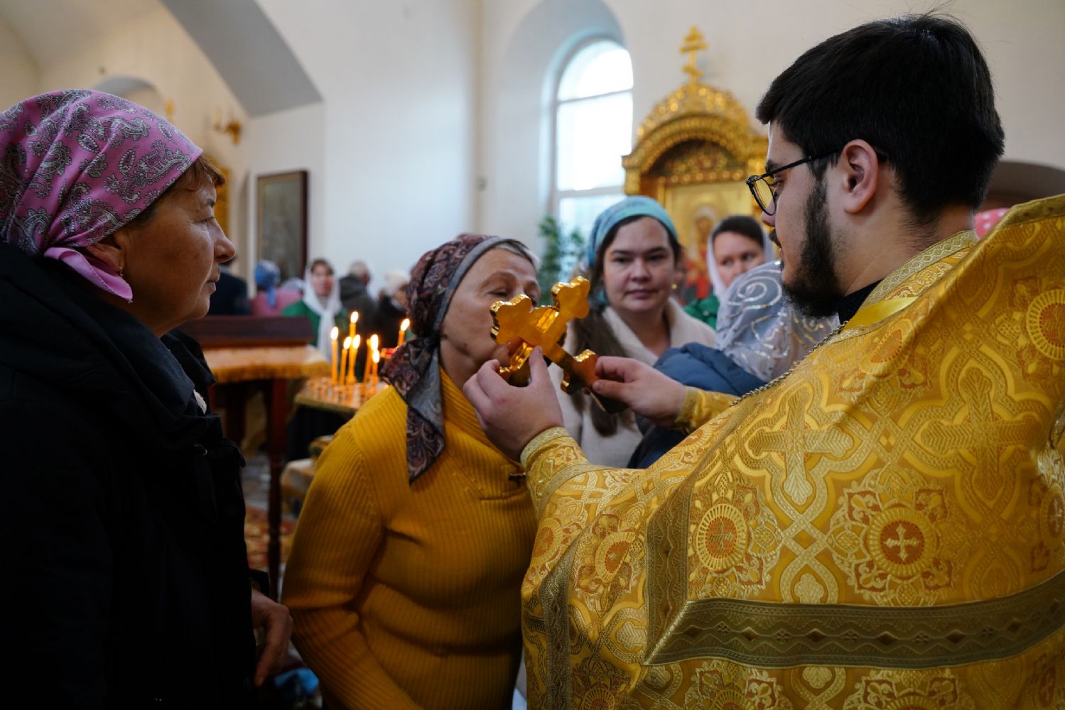 Его Высокопреосвященству сослужили настоятель храма протоиерей Александр Бачурин, клирики храма иерей Виктор Умрихин и диакон Алексий Ершов, а также протодиакон Михаил Козловский и клирик Минусинской епархии иерей Матфей Фокша. Песнопения исполняли хор храма под управлением регента Елены Умрихиной и детский хор воскресной школы под руководством Анны Михеевой.