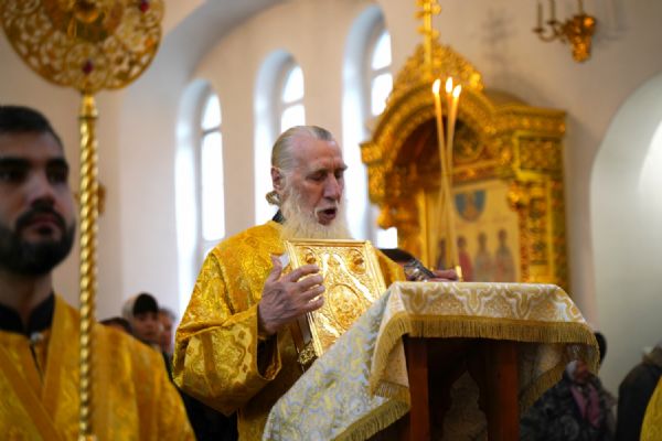 После чтения Евангелия владыка обратился к собравшимся с архипастырским словом, разъяснив глубокий духовный смысл прочитанного евангельского зачала о воскрешении Христом сына Наинской вдовы.