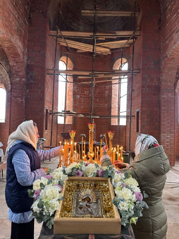 20 октября, в праздник иконы Божией Матери «Умиление» Псково-Печерской, в строящемся в честь празднуемого образа храме в п. Юбилейный Медведевского района совершена первая Божественная литургия.