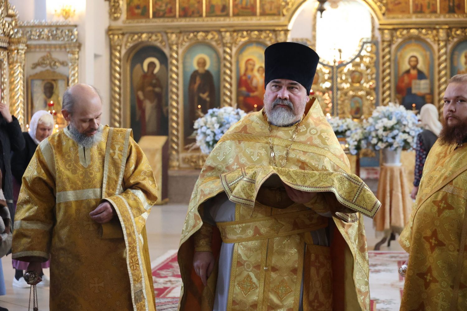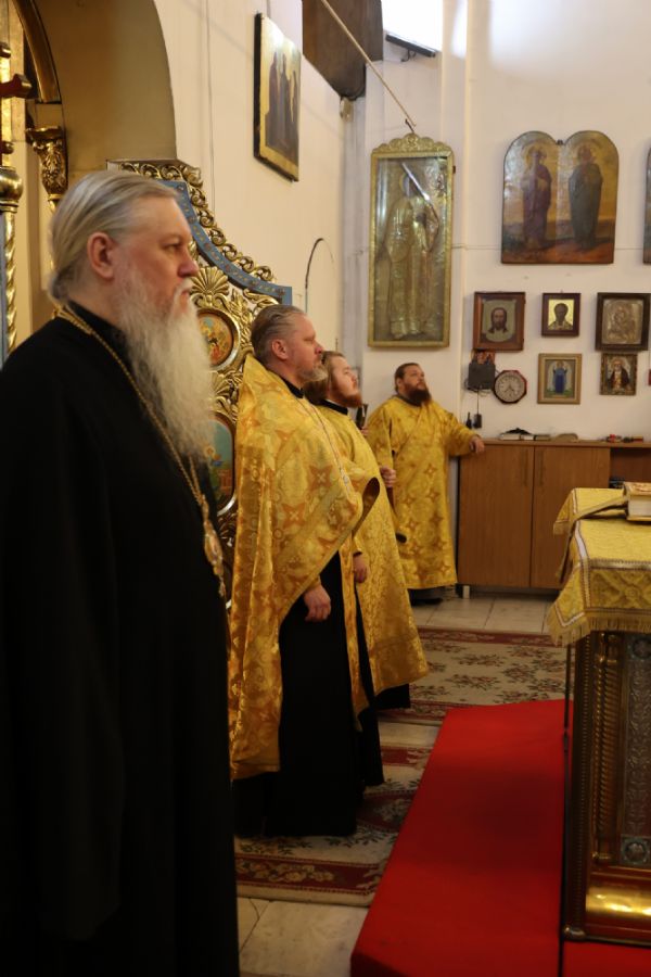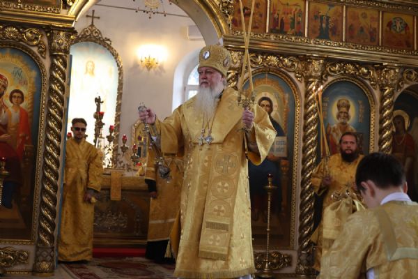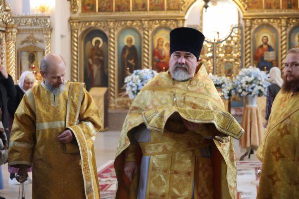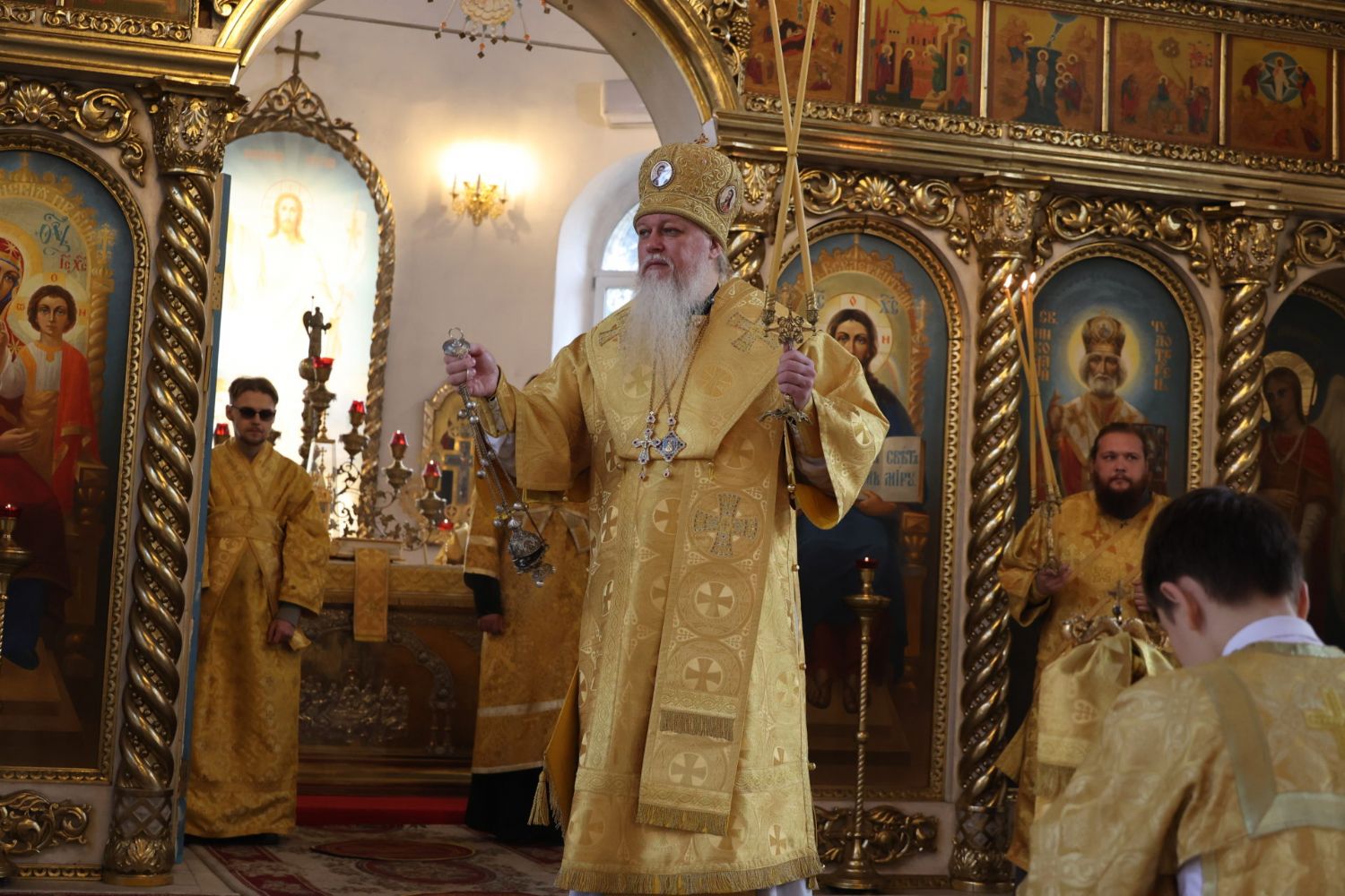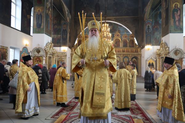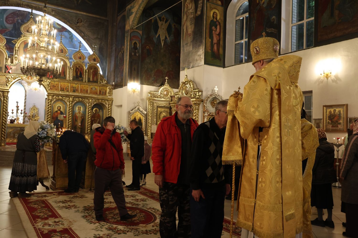 За Литургией архипастырю сослужили клирики собора протоиерей Виталий Михеев, иерей Николай Аникин, диакон Иоанн Захаров, диакон Александр Викторов, иеродиакон Питирим (Мосякин).