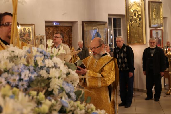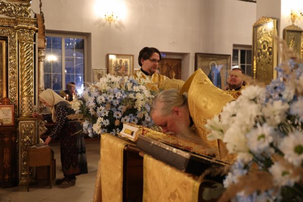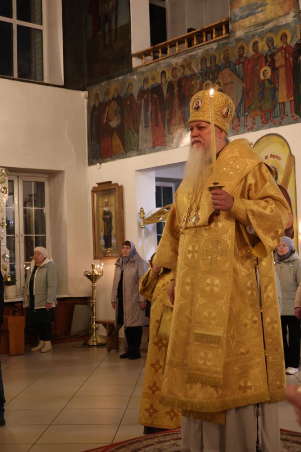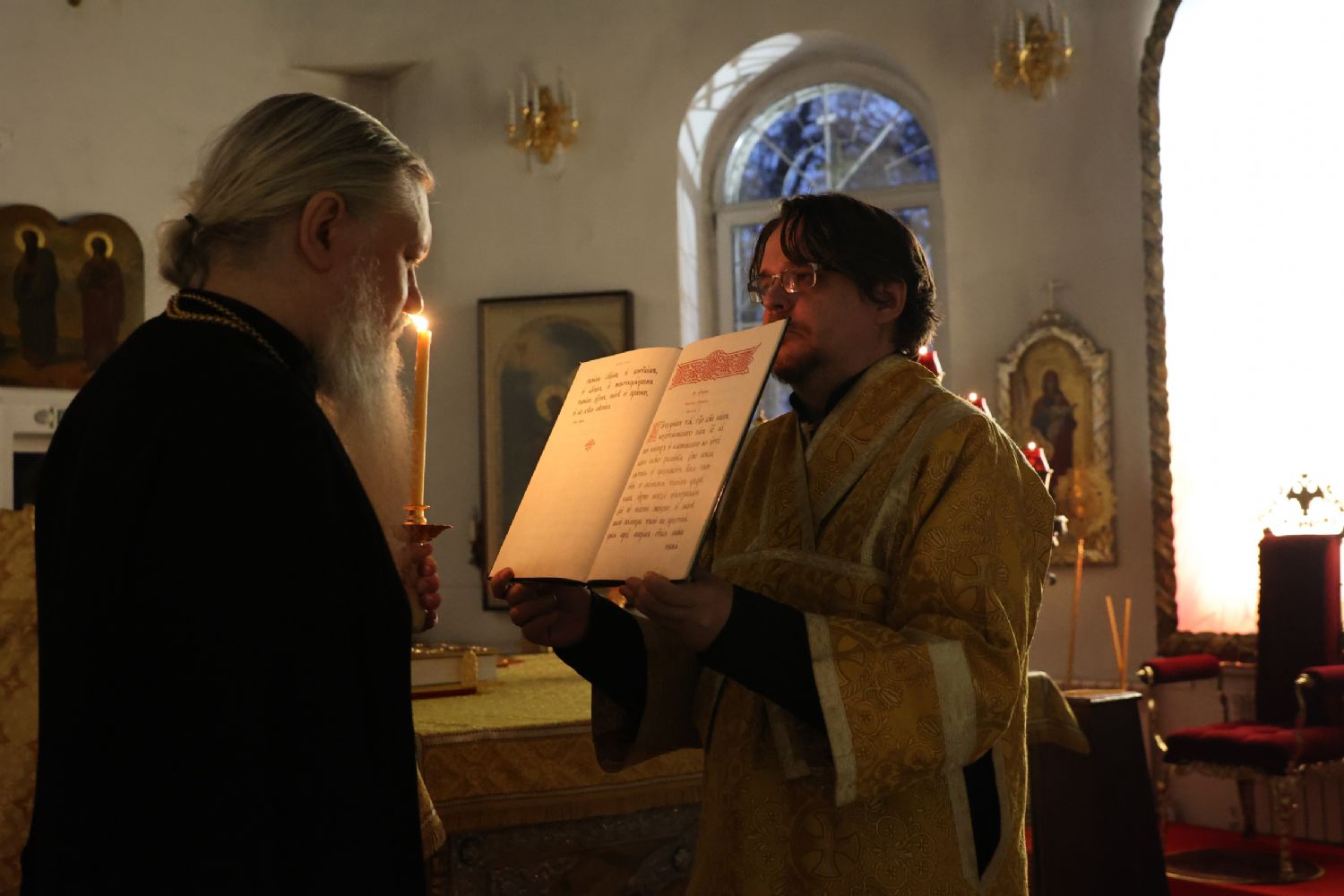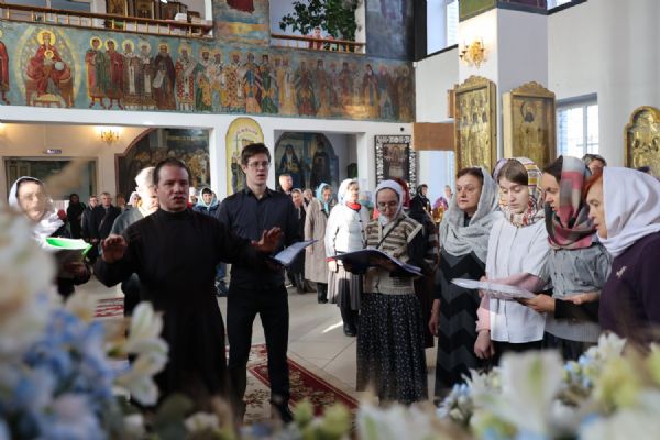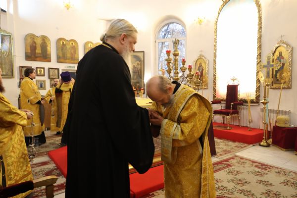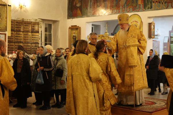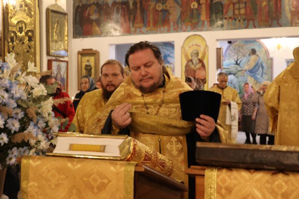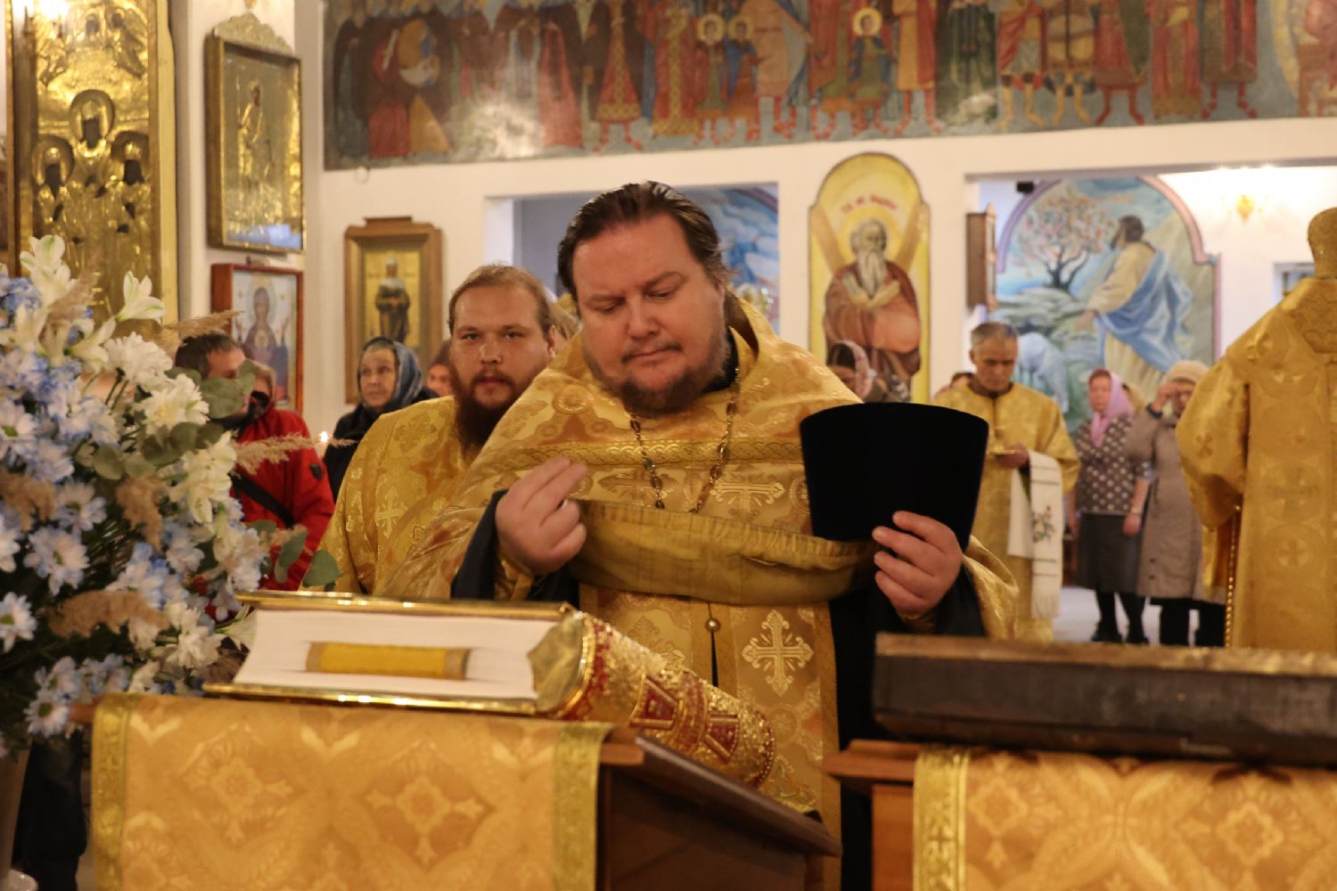 За Литургией архипастырю сослужили клирики собора протоиерей Виталий Михеев, иерей Николай Аникин, диакон Иоанн Захаров, диакон Александр Викторов, иеродиакон Питирим (Мосякин).