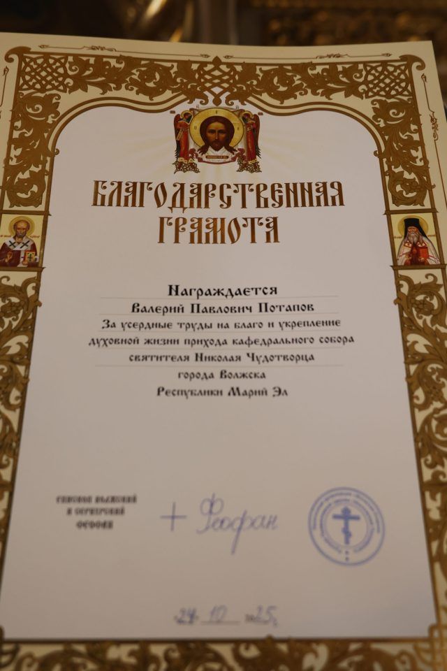 26 октября, в Неделю 20-ю по Пятидесятнице, епископ Волжский и Сернурский Феофан совершил Божественную литургию в Никольском кафедральном соборе г. Волжска. Накануне владыка возглавил здесь же всенощное бдение.
