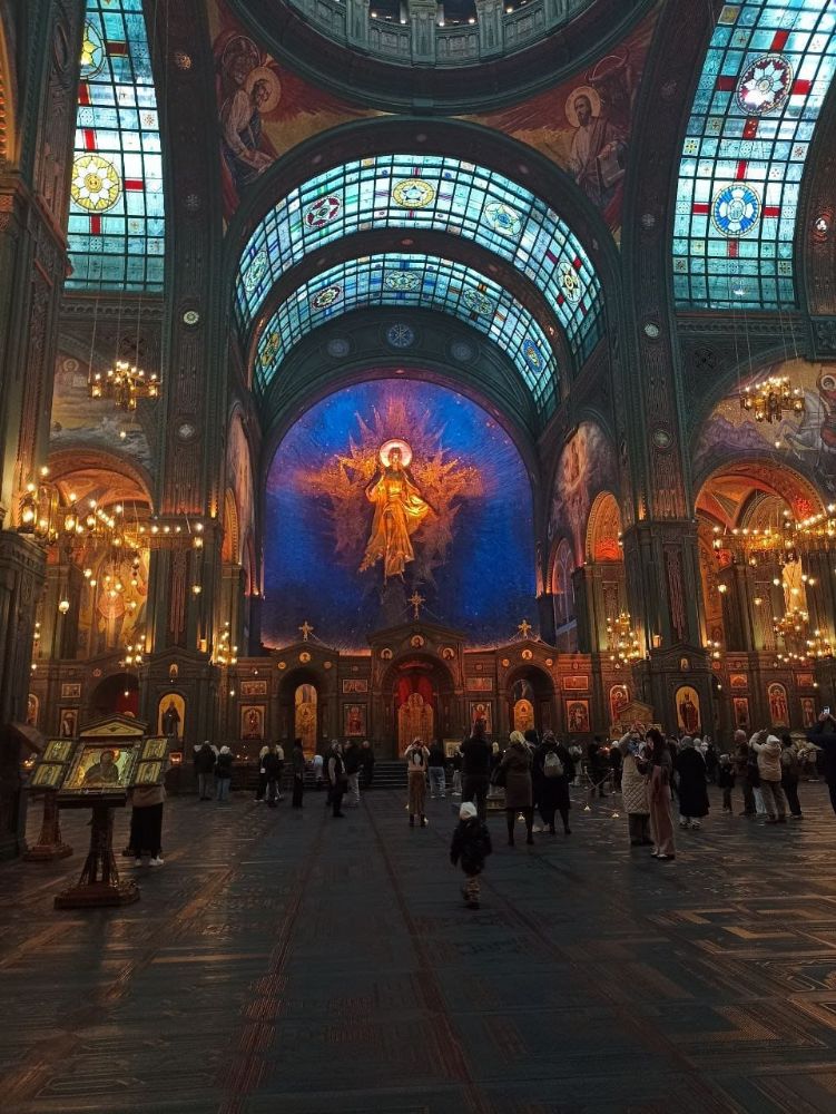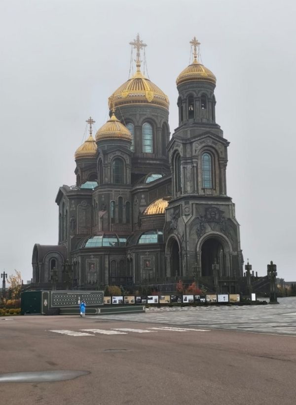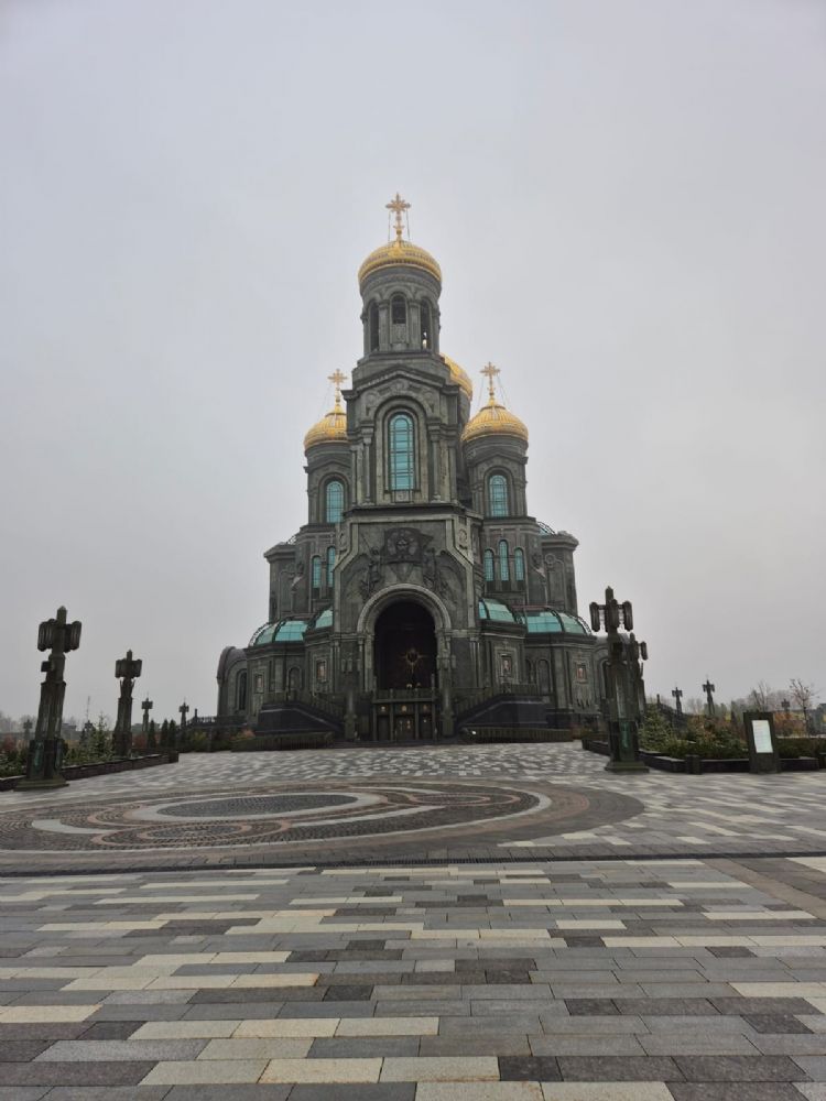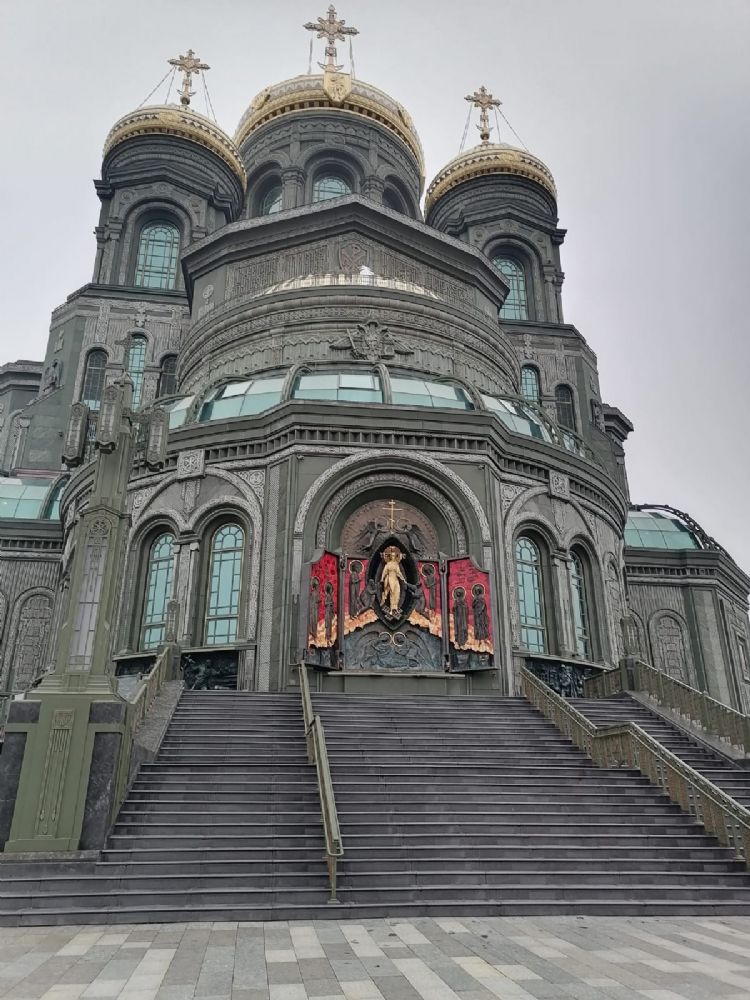 После Дороги Памяти нас познакомили с Главным храмом ВС РФ, историей его создания и архитектурой. Патриарший собор, освященный в честь Воскресения Христова, стал символом духовности защитников Отечества. Ступени, ведущие в храм, отлиты из трофейных немецких танков и оружия. Главная икона храма – образ Иисуса Христа – написан на деревянных досках орудийного лафета 8-фунтовой чугунной пушки 1710 года, поднятого со дна Невы. На боковых стенах – мозаики и росписи, где можно увидеть доблестных князей, воинов-победителей, ангелов и святых.