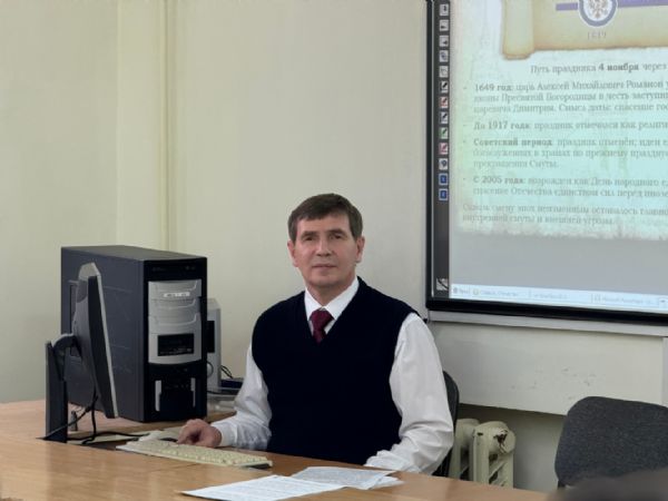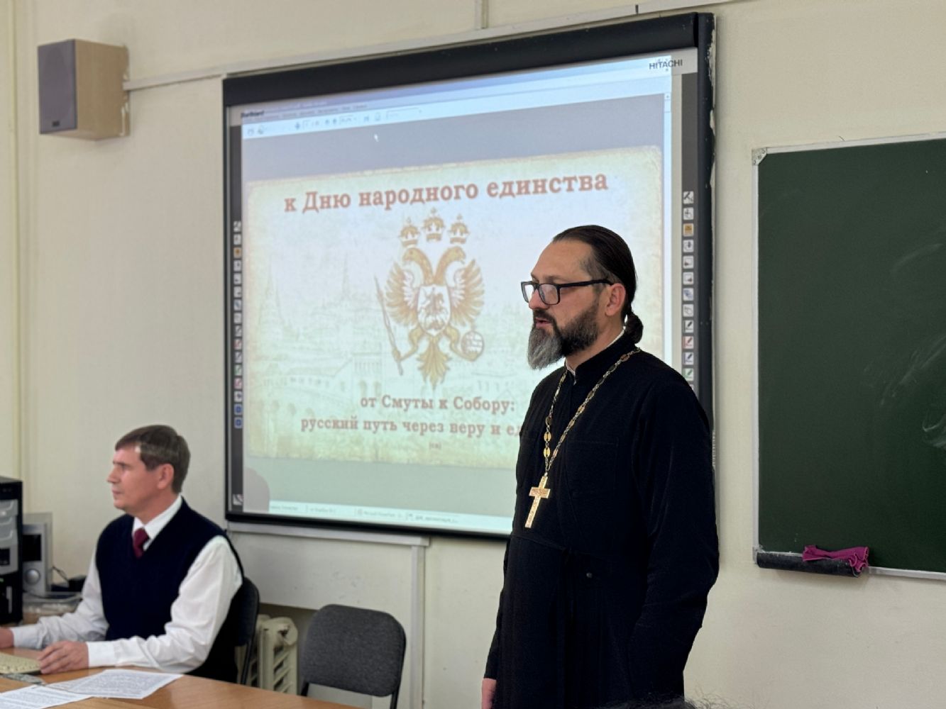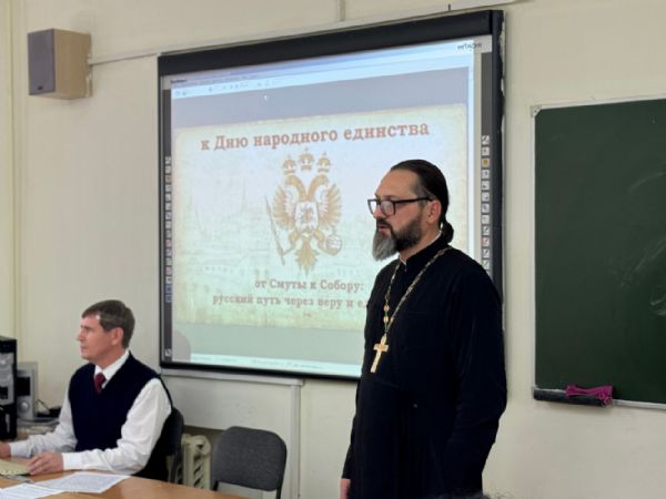 Отец Димитрий выступил с презентацией «День народного единства», подготовленной Синодальным миссионерским отделом – об истории Смутного времени на Руси и его преодолении.