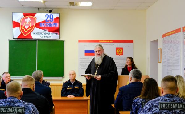 «Рад всех приветствовать в день торжества нашей могучей службы Росгвардии! Мы знаем, что это великое служение, добропобедный вклад в державную мощь нашего государства и личное благополучие каждого гражданина нашей страны. Надеемся, что ваш могучий труд и ваше служение поможет нашему народу и спать спокойно, и бодрствовать безбоязненно. Пусть Господь поддержит, укрепит, наставит и не оставит каждого из вас в моменты трудных служебных испытаний и во время нахождения у домашнего очага в кругу самых родных и близких», – пожелал отец Александр.