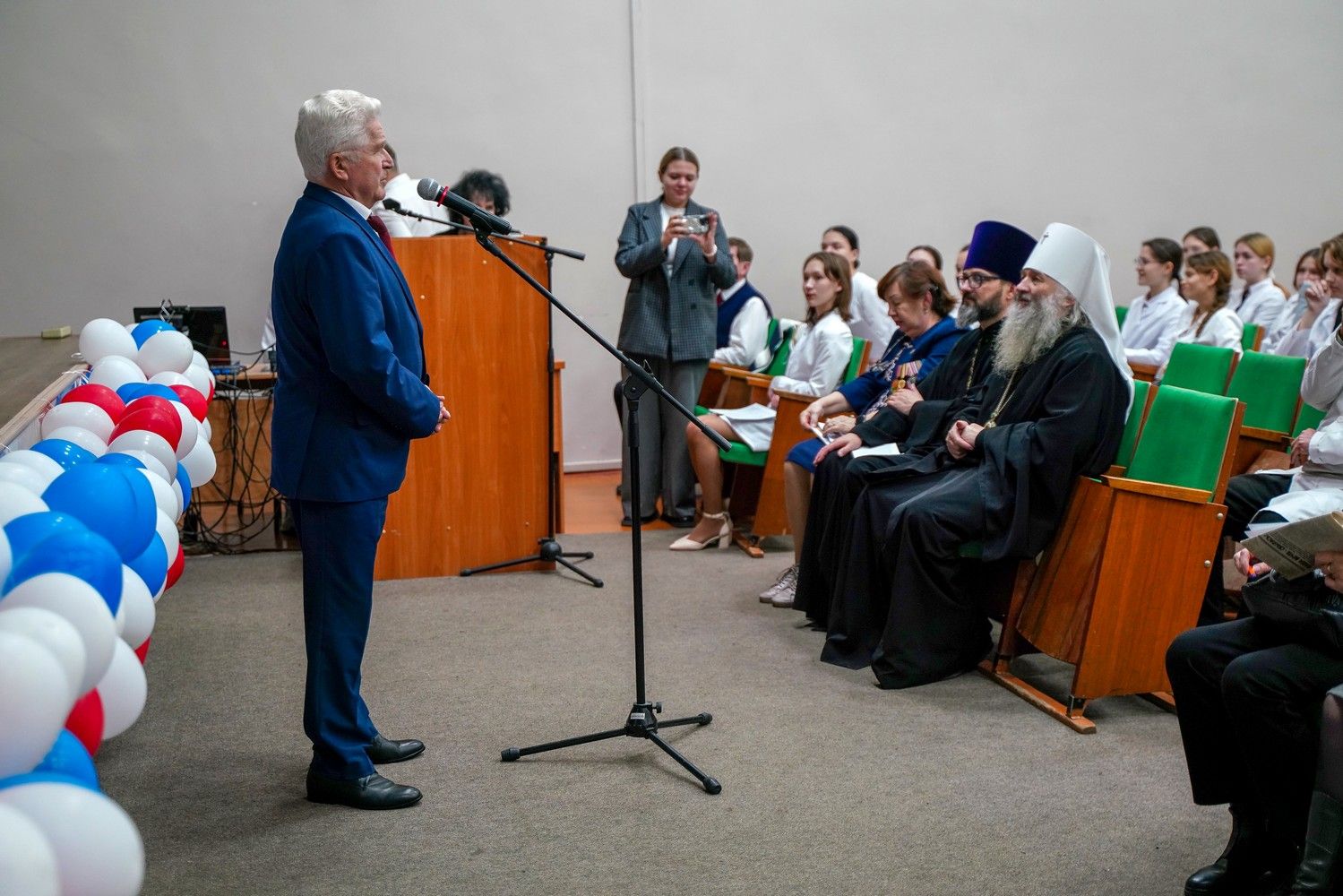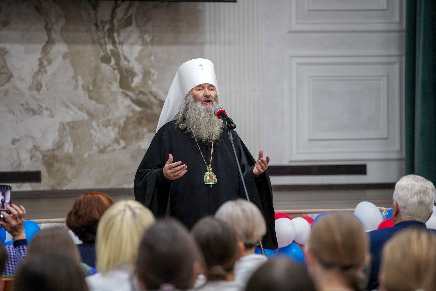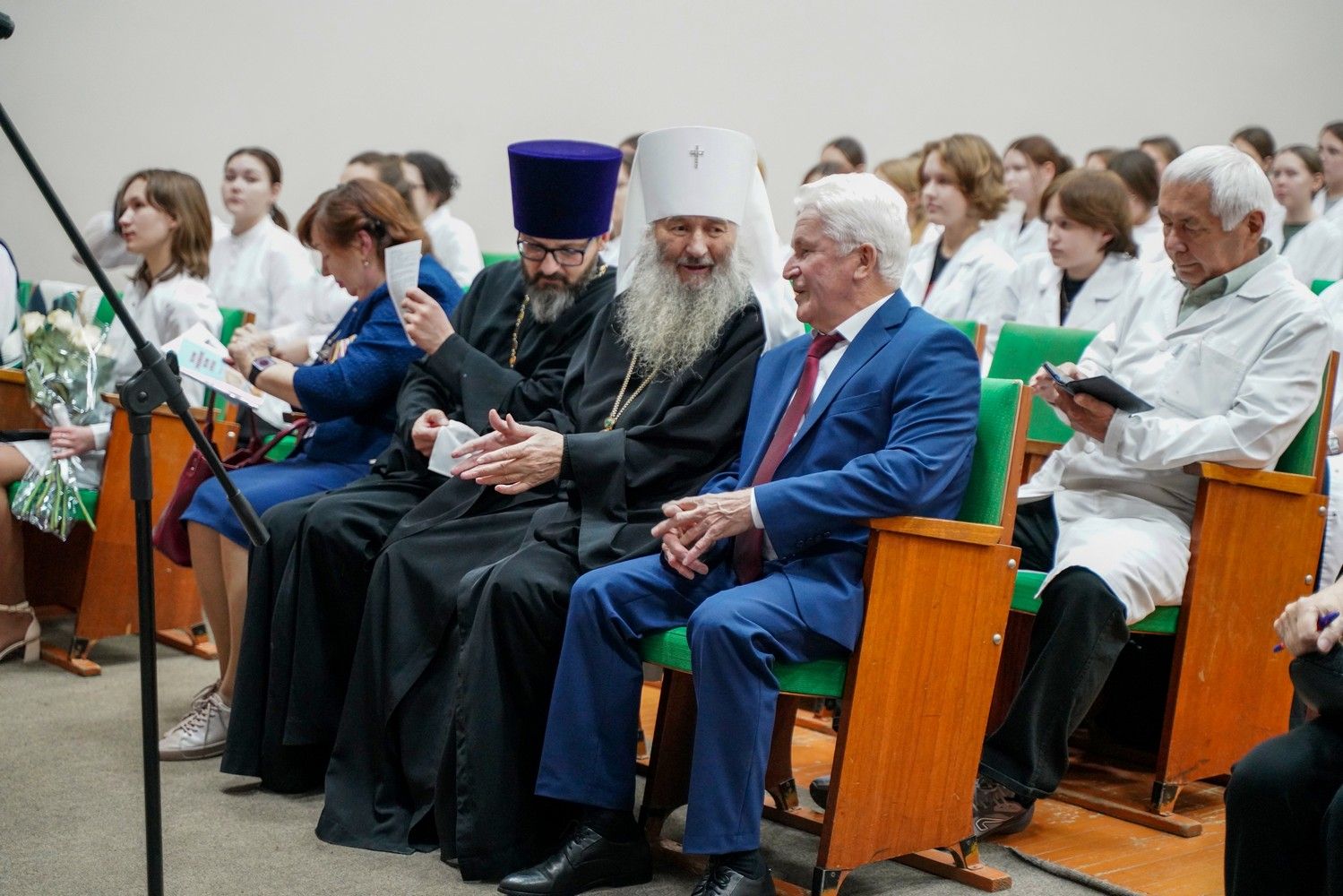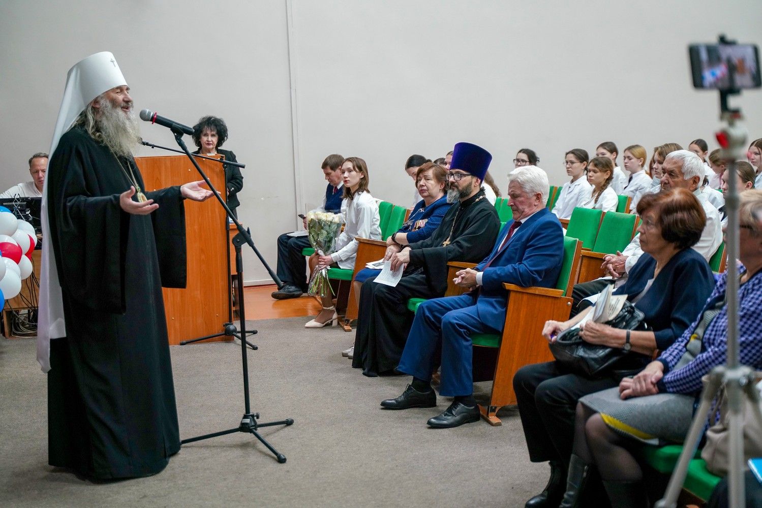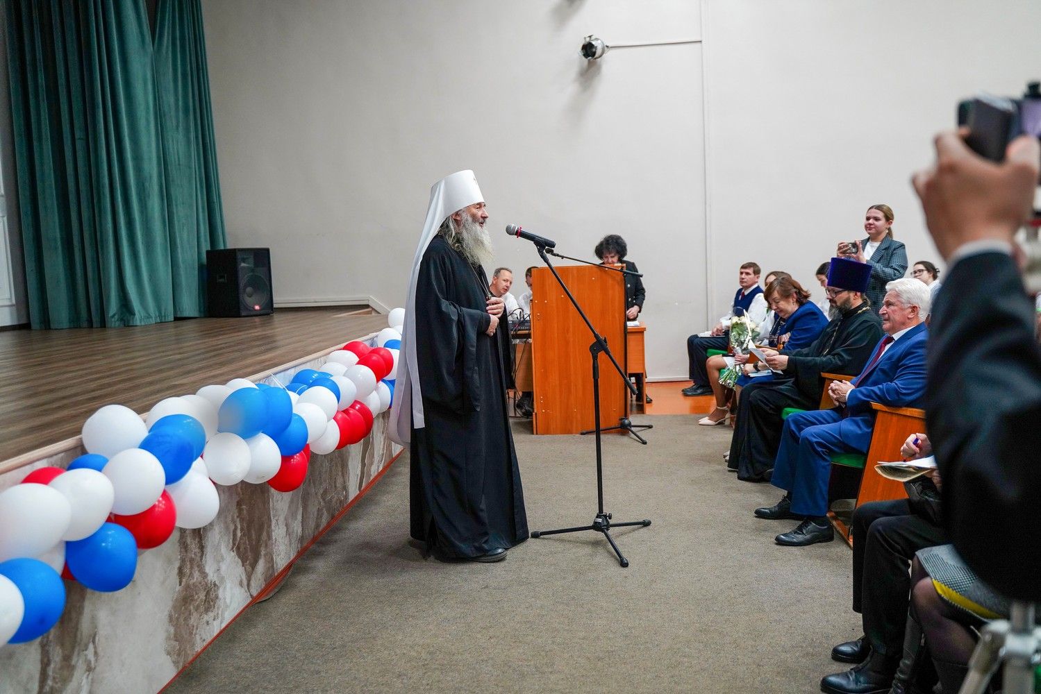 Пленарное заседание посетил митрополит Йошкар-Олинский и Марийский Иоанн, владыку сопровождал секретарь Йошкар-Олинского епархиального управления иерей Димитрий Дьяков, окормляющий данное учебное заведение.