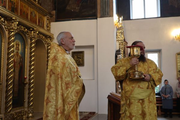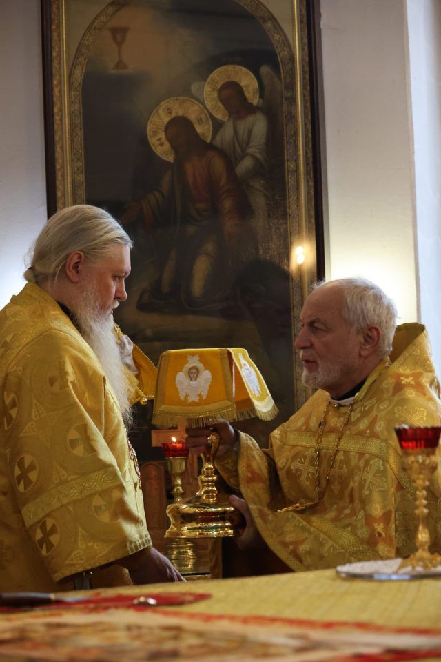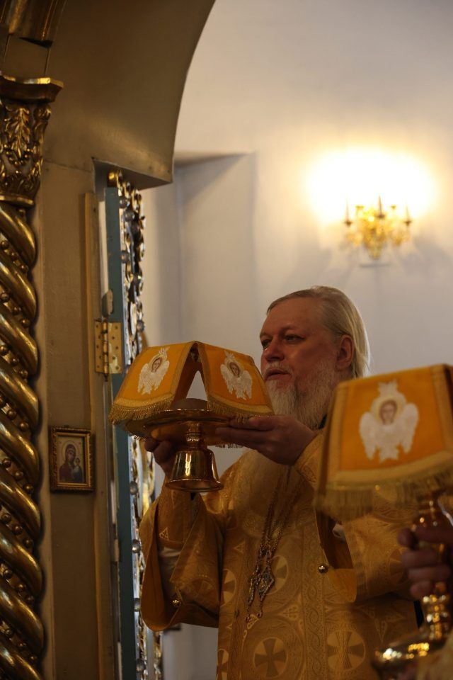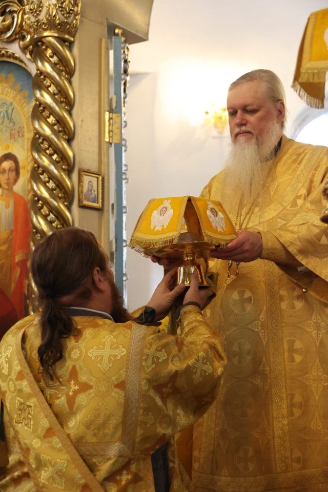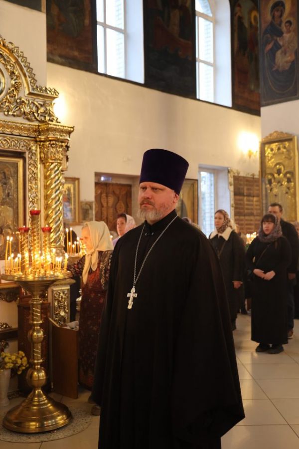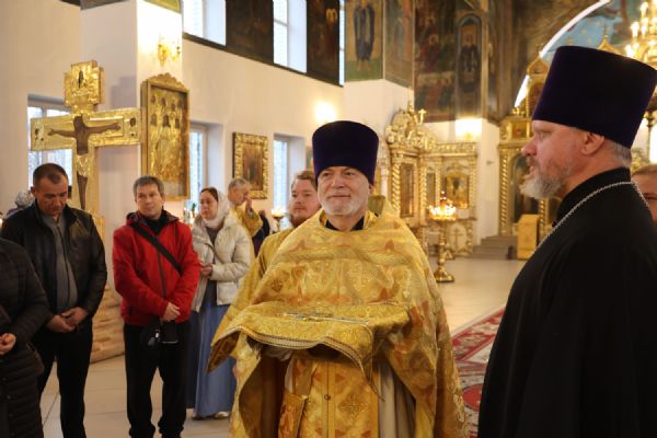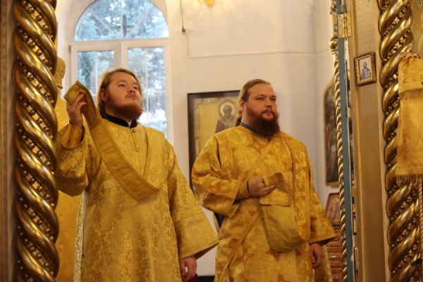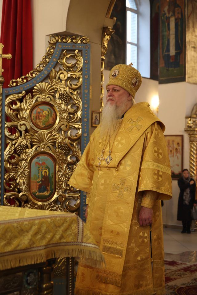 Его Преосвященству сослужили ключарь кафедрального собора иерей Иоанн Лапшинский, клирики собора иерей Сергий Першаков, диакон Иоанн Захаров, диакон Александр Викторов и иеродиакон Питирим (Мосякин). Песнопения исполнял архиерейский хор под управлением Любови Михеевой.