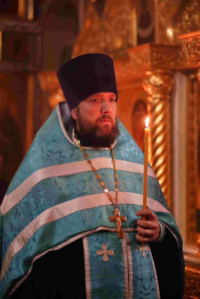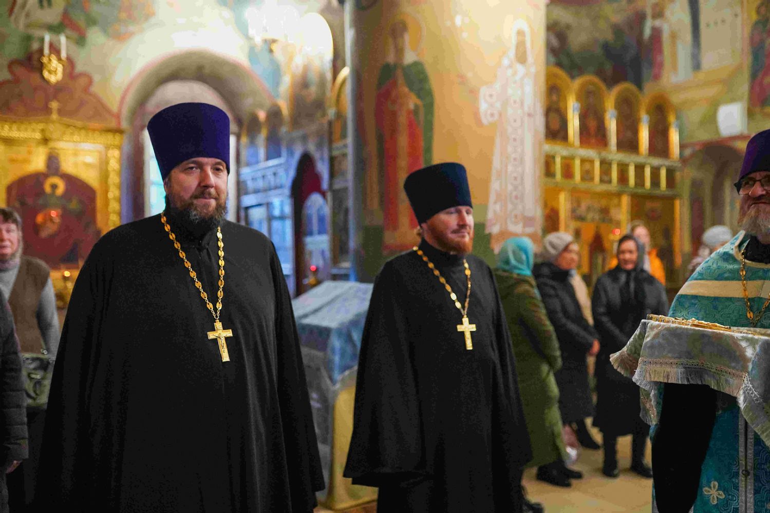 Архипастырю сослужили настоятель собора протоиерей Евгений Кутырев, благочинный Йошкар-Олинского церковного округа протоиерей Андрей Норкин, клирики собора иереи Владимир Глебов, Олег Большаков и Александр Деревяшкин, диакон Владимир Лихачев, а также протодиакон Михаил Козловский. Песнопения исполнял хор собора под управлением Ангелины Бабиной.