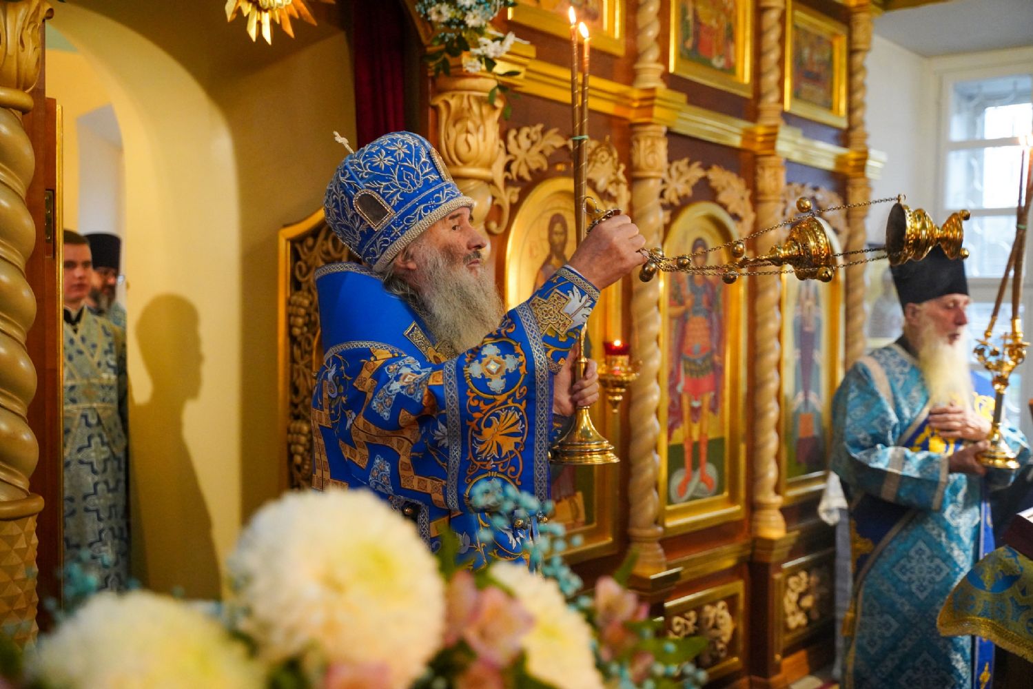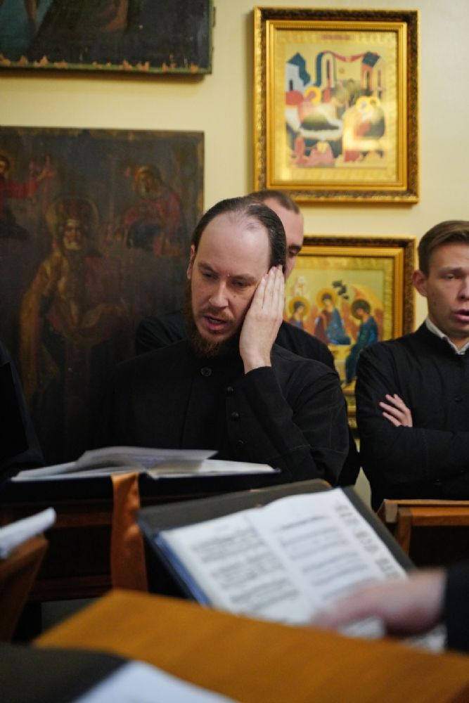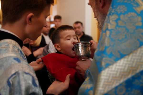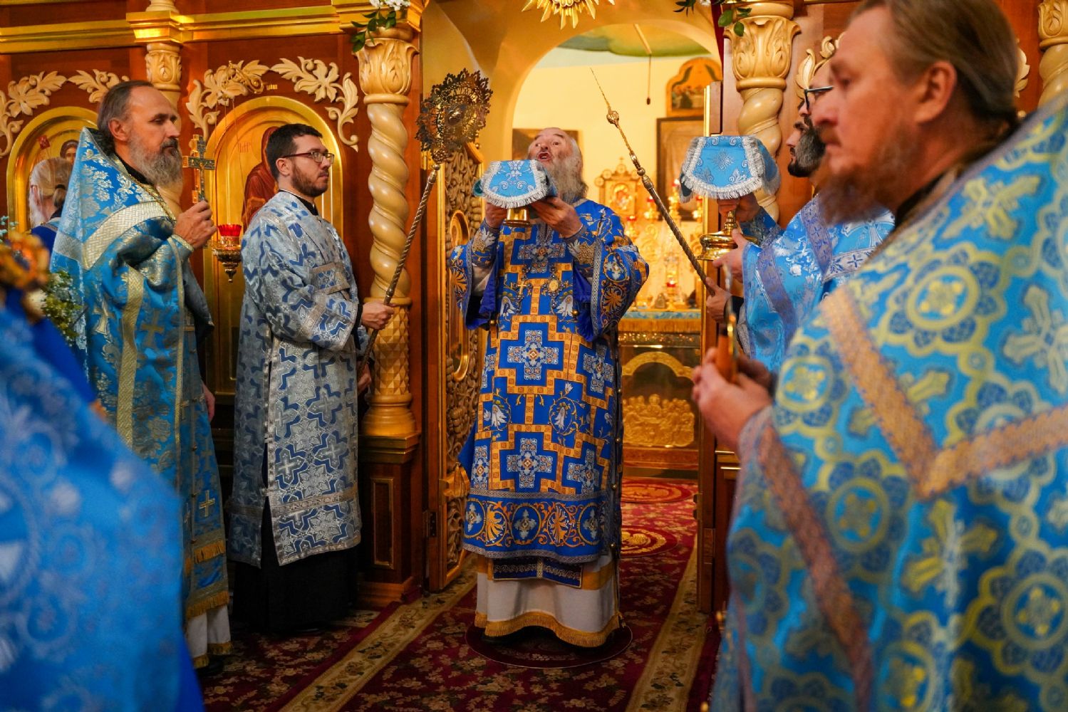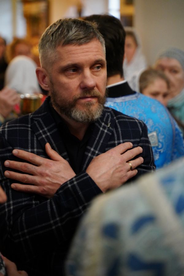 Архипастырю сослужили секретарь Йошкар-Олинского епархиального управления иерей Димитрий Дьяков, настоятель храма иерей Александр Коваль, ключарь Благовещенского кафедрального собора г. Йошкар-Олы протоиерей Сергий Поглазов, клирик Благовещенского собора диакон Андрей Дружинин и протодиакон Михаил Козловский. Песнопения исполнял хор Троице-Сергиевой лавры под управлением иеромонаха Нестора (Волкова).