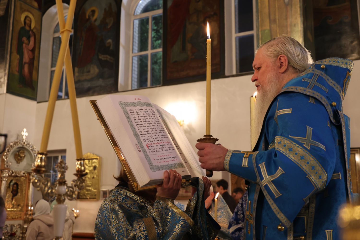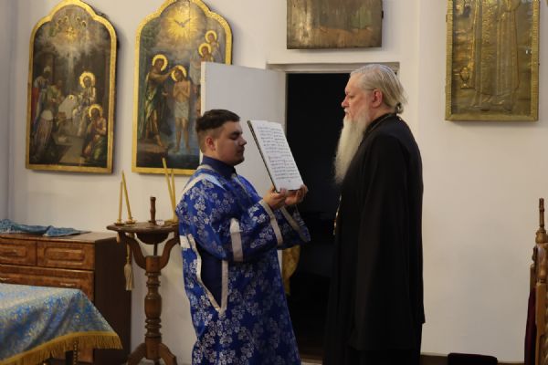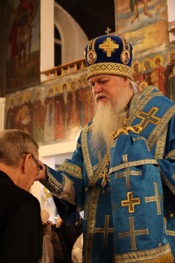 Его Преосвященству сослужили ключарь кафедрального собора иерей Иоанн Лапшинский, клирики собора иеромонах Авель (Крашенинников), диакон Иоанн Захаров и диакон Александр Викторов. Песнопения исполнял архиерейский хор под управлением Любови Михеевой.