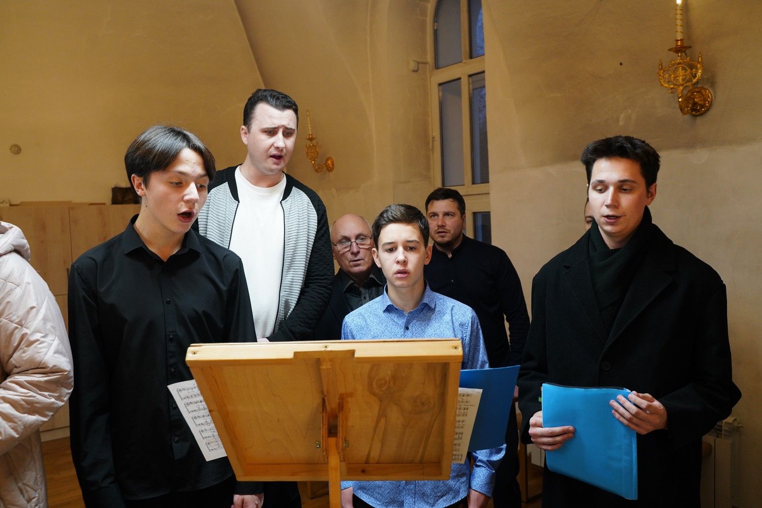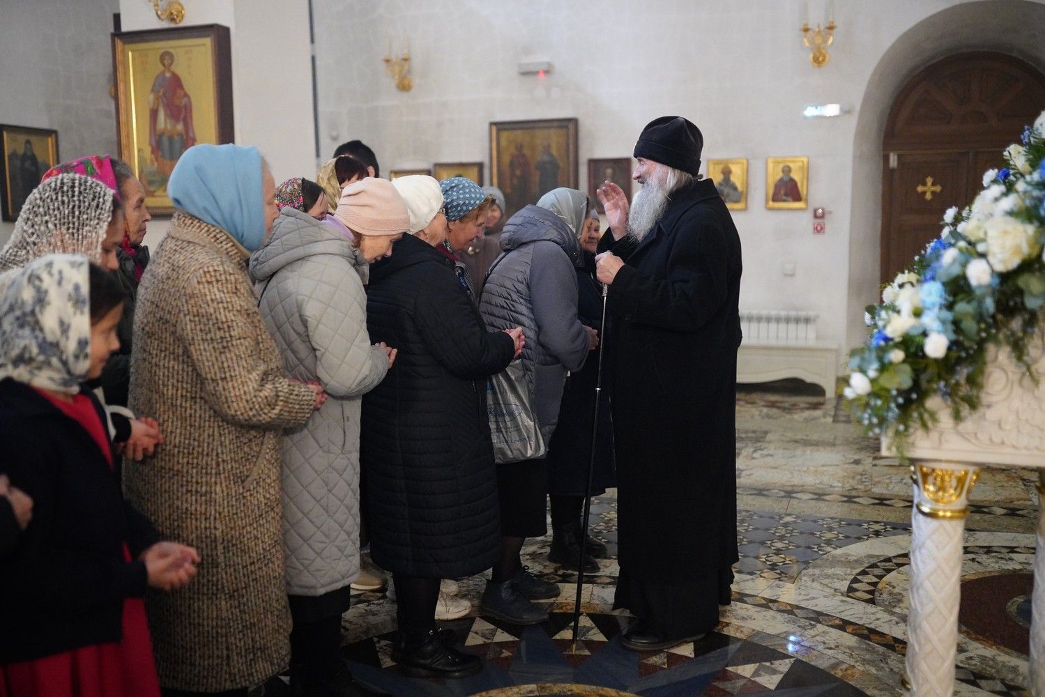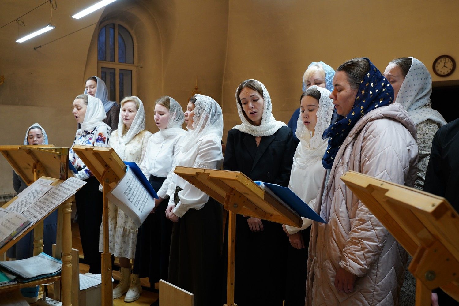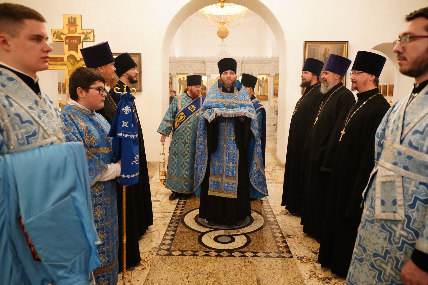 Архипастырю сослужили настоятель храма иерей Алексий Михеев, ключарь Благовещенского кафедрального собора протоиерей Сергий Поглазов, настоятель храма Казанской иконы Божией Матери с. Нурма иерей Александр Коваль, клирики храма иконы «Всех скорбящих Радость» иереи Алексий Кирюшкин, Игорь Коваль и Сергий Пуртов, протодиакон Михаил Козловский и клирик Благовещенского кафедрального собора диакон Андрей Дружинин. Песнопения исполнял хор храма под управлением Александры Ивановой.